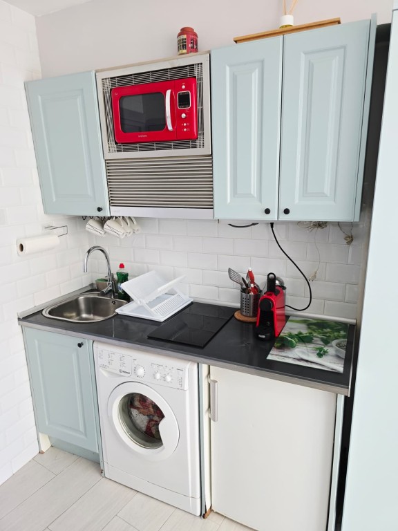 Imagina empezar el día con luz natural entrando por la ventana. Es un estudio luminoso, y esa sensación se percibe desde el primer instante. Desayunas con calma, recoges la cama abatible y en segundos el espacio queda despejado, ordenado y listo para continuar el día.