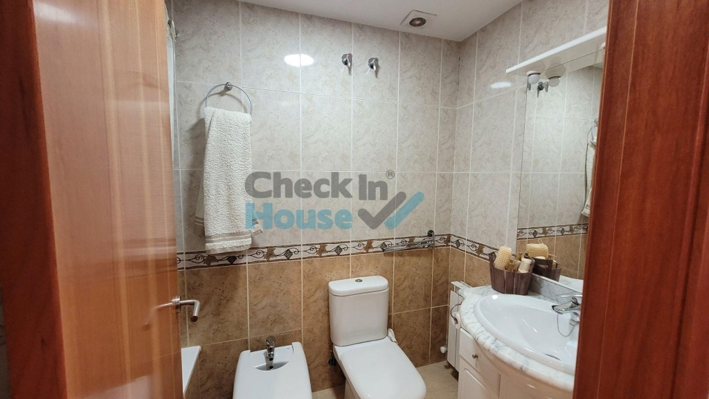 Cómodo apartamento de tres habitaciones y dos baños. Dispone de parking en la propia finca y una azotea comunitaria desde donde se puede ver el mar. Se encuentra a menos de 5 minutos de la playa y del centro de la villa. Esta situada muy cerca de la zona comercial, donde encontraras comercios, mercado, farmacias, etc. Disfrutaréis de unas estupendas vacaciones en cualquier época del año. La distribución es muy práctica: