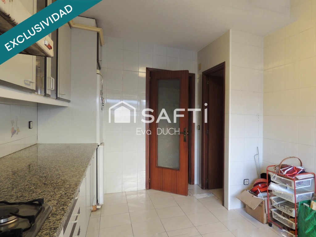 La vivienda ofrece 135 m² útiles con una distribución muy aprovechable: 4 habitaciones (una suite con baño propio y salida a balcón posterior), 2 baños completos, una cocina independiente amplia con acceso a balcón y un salón-comedor generoso, muy luminoso y con posibilidad de instalar chimenea.