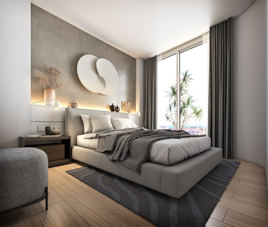 El interior de estas viviendas está cuidadosamente diseñado para ofrecer un ambiente acogedor y funcional. Con dos dormitorios y dos baños, cada bajos está equipado con aire acondicionado para garantizar el confort en todas las estaciones. Los suelos laminados aportan un toque moderno y elegante, mientras que los armarios empotrados ofrecen un almacenamiento eficiente. La cocina está equipada con electrodomésticos de alta calidad, facilitando las tareas diarias. Además, el sistema de videoportero y las persianas eléctricas añaden un nivel extra de comodidad y seguridad a la vida diaria.