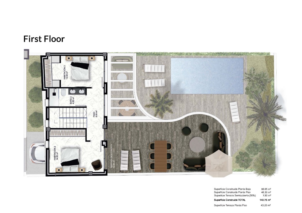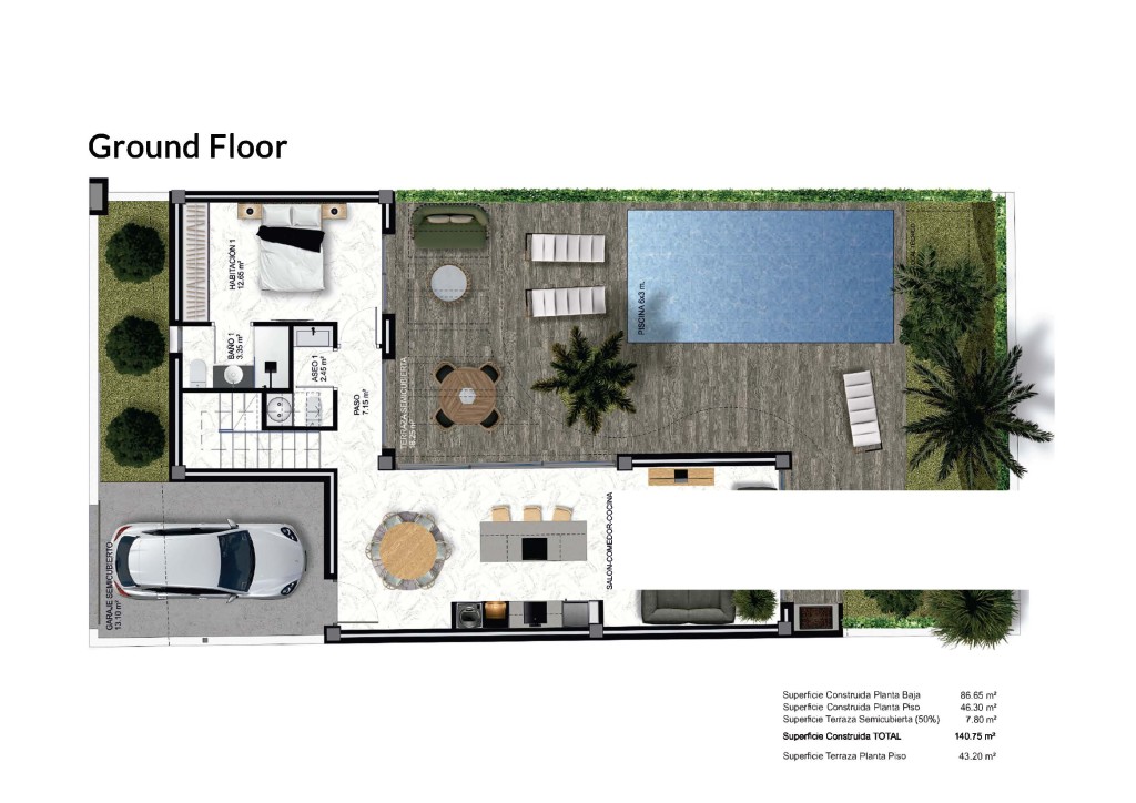 Los exteriores de estos adosados en Heredades están diseñados para maximizar el disfrute del clima mediterráneo. Cada propiedad cuenta con un jardín privado, perfecto para crear un oasis personal de tranquilidad o para disfrutar de actividades al aire libre en familia. La presencia de una pérgola añade un toque de elegancia y funcionalidad, proporcionando sombra y un espacio ideal para relajarse o recibir invitados. Además, cada adosado dispone de una piscina privada, ofreciendo un lugar refrescante para combatir el calor del verano y disfrutar de momentos de ocio en la comodidad de su hogar. La terraza, otro de los atractivos exteriores, se presenta como un espacio versátil para disfrutar de las vistas y del aire libre.