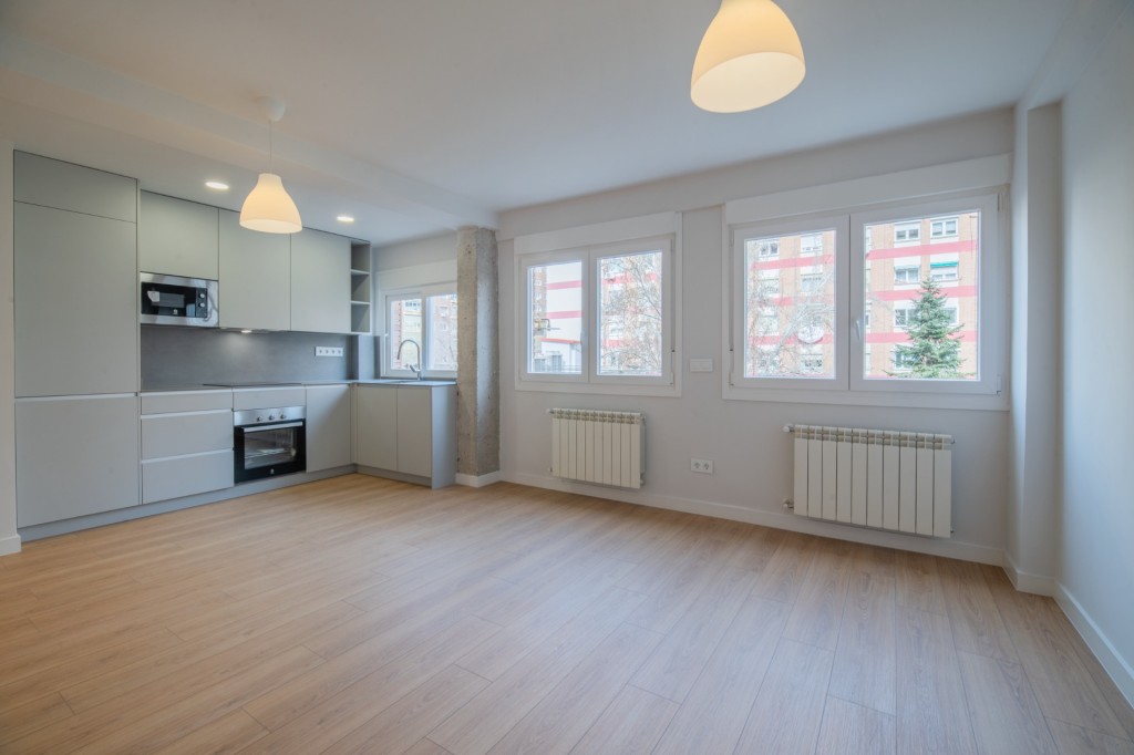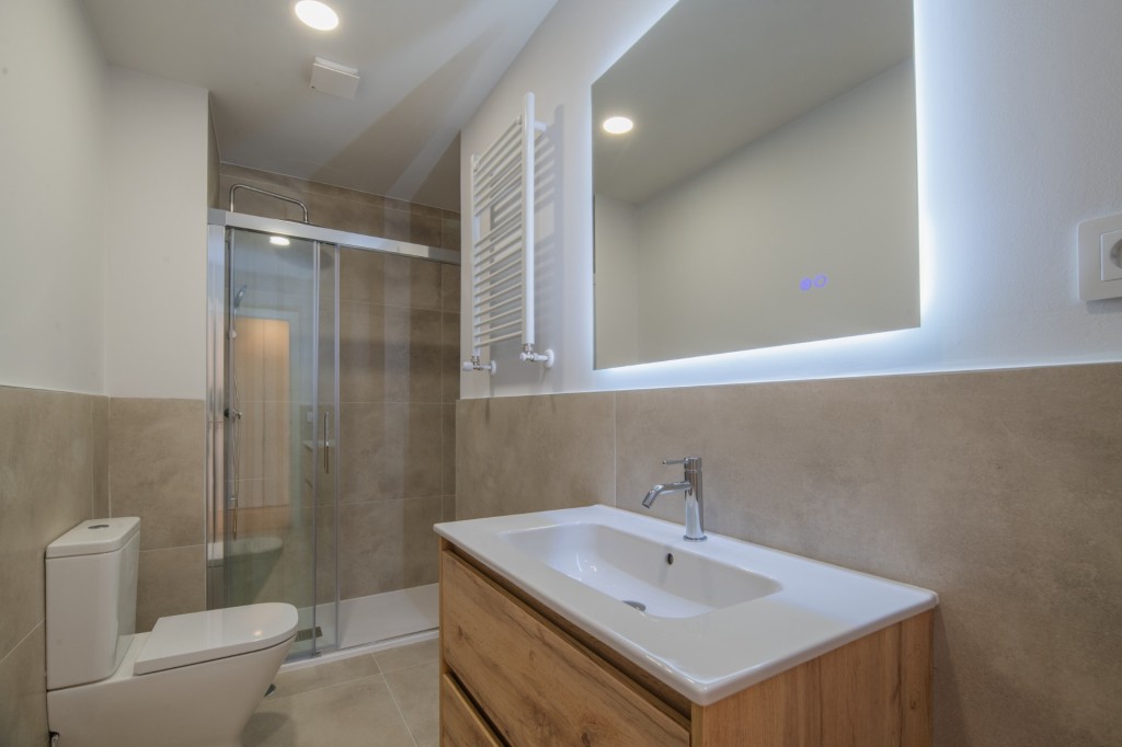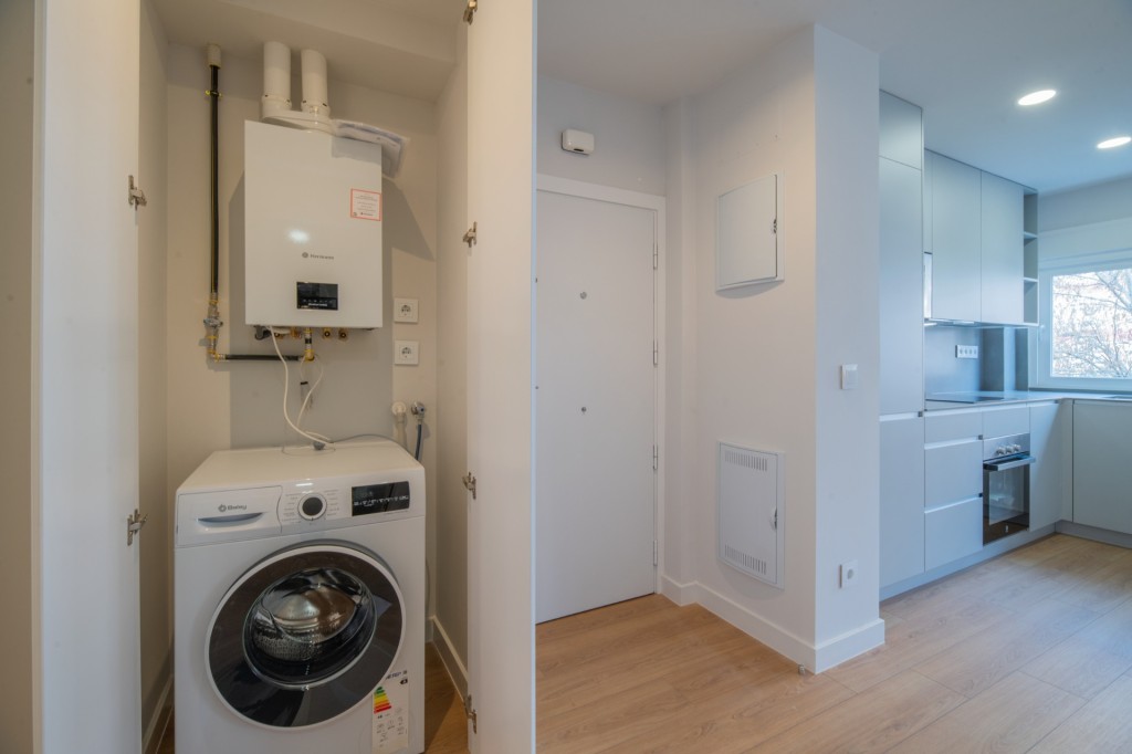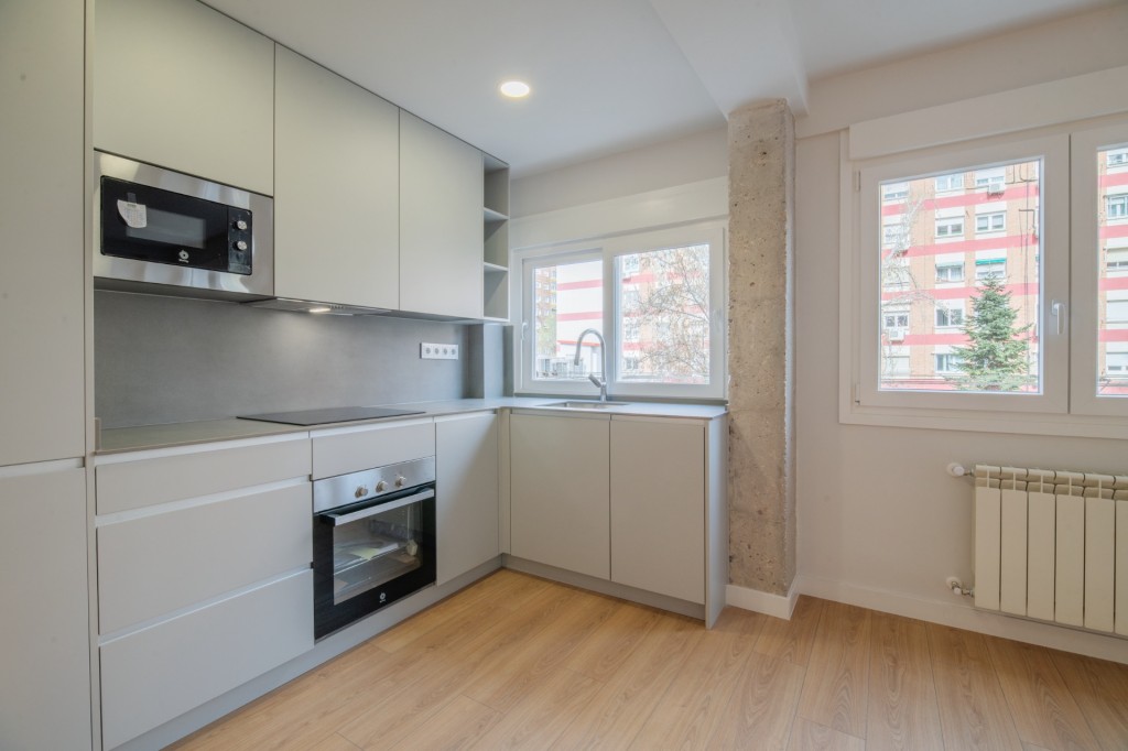 Cuenta con pre-instalación de aire acondicionado, suelos de tarima de alta resistencia y acabados porcelánicos en baños. Las carpinterías exteriores cumplen con los máximos estándares de eficiencia energética, y la instalación eléctrica y la fontanería han sido renovadas por completo. La cocina se entrega totalmente equipada.