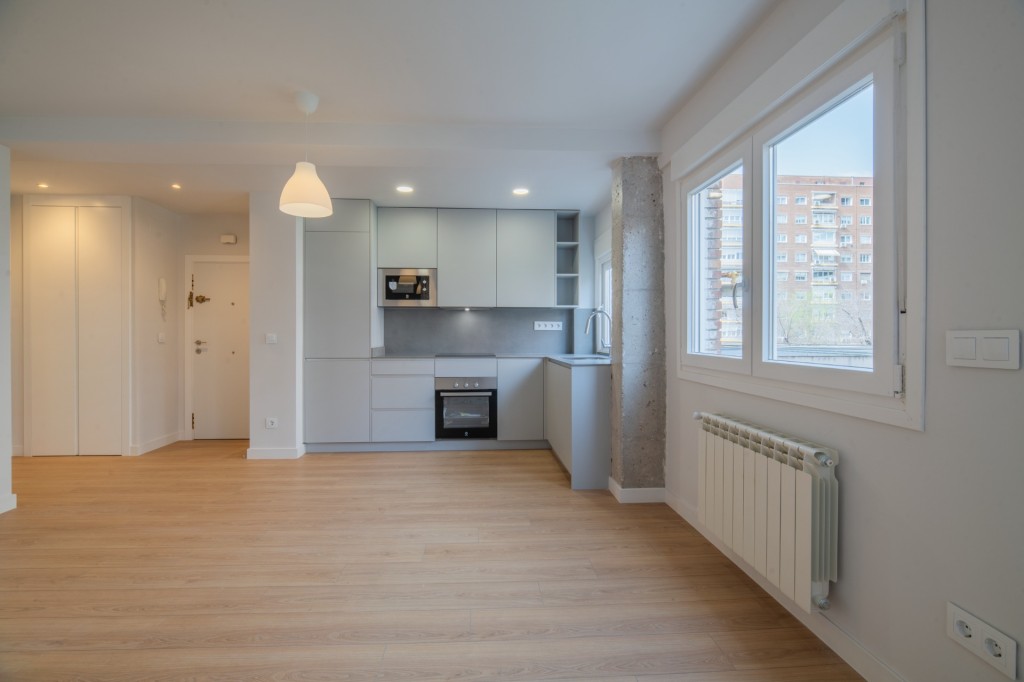Homes by Gestilar presenta esta magnífica vivienda en la calle Cruz del Sur, en el demandado barrio de Estrella (Retiro), con dos habitaciones dobles y dos baños totalmente reformada.