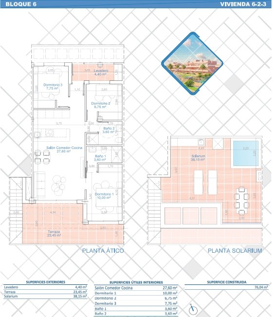 Ubicado en el encantador municipio de Pilar de la Horadada, este conjunto residencial ofrece una variedad de opciones de vivienda que se adaptan a diferentes necesidades. Con un total de 24 propiedades, los futuros residentes pueden elegir entre apartamentos, bajos, bungalows con solarium y bungalows con jardín. Esta diversidad tipológica asegura que cada familia o individuo encuentre su hogar ideal en un entorno que combina tranquilidad y accesibilidad. La proximidad al mar, a solo 2 km, permite disfrutar de la brisa marina y de agradables paseos por la costa. Además, el aeropuerto más cercano se encuentra a 48 km, facilitando los desplazamientos internacionales y nacionales. La ubicación estratégica de este residencial en Pilar de la Horadada lo convierte en una opción atractiva para quienes buscan un equilibrio entre comodidad y calidad de vida.