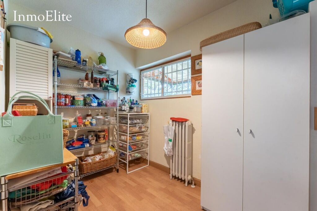 En la planta baja cuenta con un garaje con capacidad para dos vehíchulos así como, una sala multiusos, bodega, cuarto trastero y un amplio porche techado que da a la piscina privada dotada con agua salina que se rodea de césped y árboles, generando un entorno agradable y privado en contacto con la naturaleza.