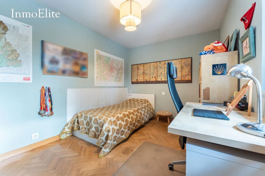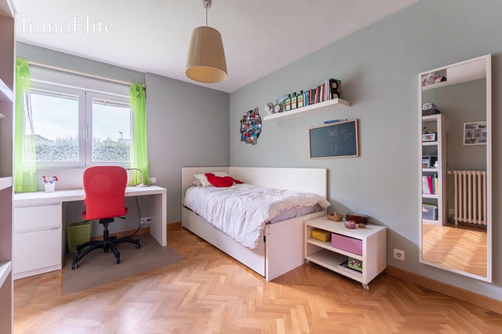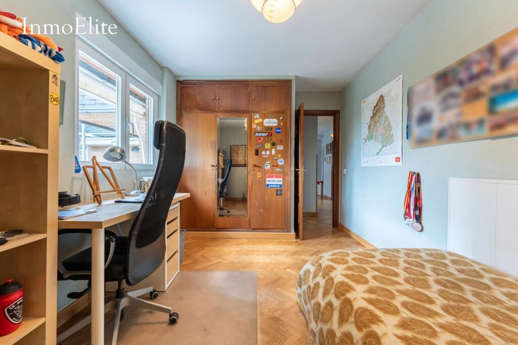 La vivienda cuenta con cinco habitaciones, una de ellas en suite, garantizando espacio para familias numerosas o que precisen zonas de estudio y descanso separadas.