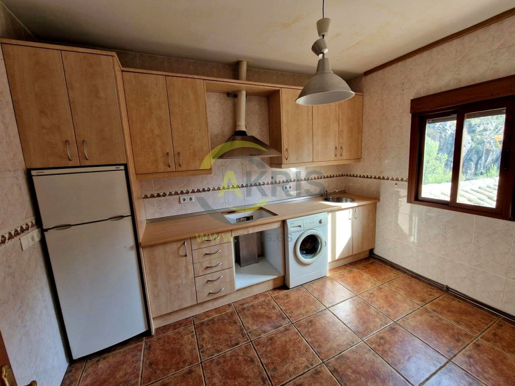 La cocina, completamente amueblada, está pensada para el día a día y se complementa con armarios empotrados que ofrecen un práctico espacio de almacenamiento. Para los meses más fríos, la vivienda cuenta con calefacción eléctrica y una chimenea, que aportan un ambiente especialmente acogedor y con mucho carácter.