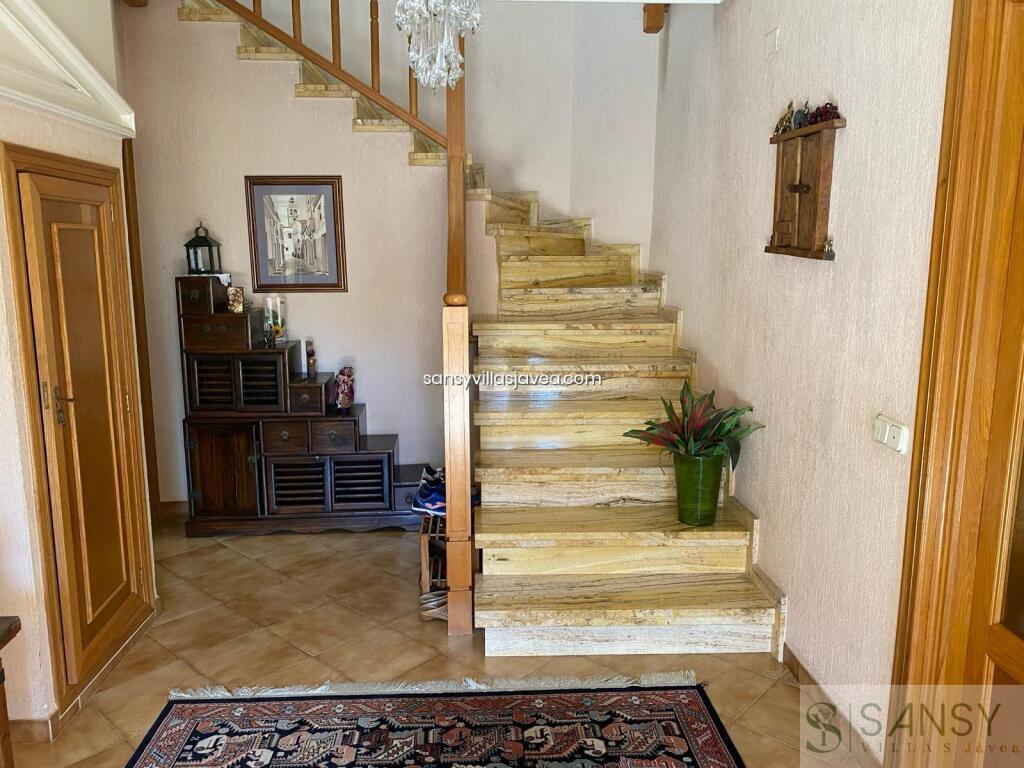 Villa 4 dormitorios, 4 baños, 1 garajes, Buen estado, en Jávea-Xàbia, Alicante Fantástico Chalet en el Puchol de Javea unas de las mejores zonas de Javea , orientada al sur muy cerca del puerto y del pueblo. La casa ofrece una entorno muy privado y de calidad, el muy amplio salon/ comedor con chimenea tiene acceso a una gran naya acristalada donde se puede apreciar unas buenas vistas a la piscina de 5x10 metros que estar rodeada de una amplia terraza donde también se encuentra una zona de BBQ cubierta para disfrutar de una buena comida con amigos. La cocina es de buen tamaño y de estilo rustico totalmente equipada con isla en el centro. Dispone también de dos aseos de cortecia. Los 5 dormitorios de espaciosos dobles con amplios armarios empotrados y los 4 baños en suite e principal con una bañera de hidromasaje. Lo mas destacado esta propiedad es la piscina climatizada y una sauna de vapor para su bien estar, hay una gran bodega donde se puede decantar vinos y sentirse en un entorno rural. Extras Sala de juegos , gimnasio , una enorme garaje para 5 coches, agua caliente por placas solar . Una propiedad que cumple con todo un deseo para vivir cómodamente. Pídenos una cita sin compromiso