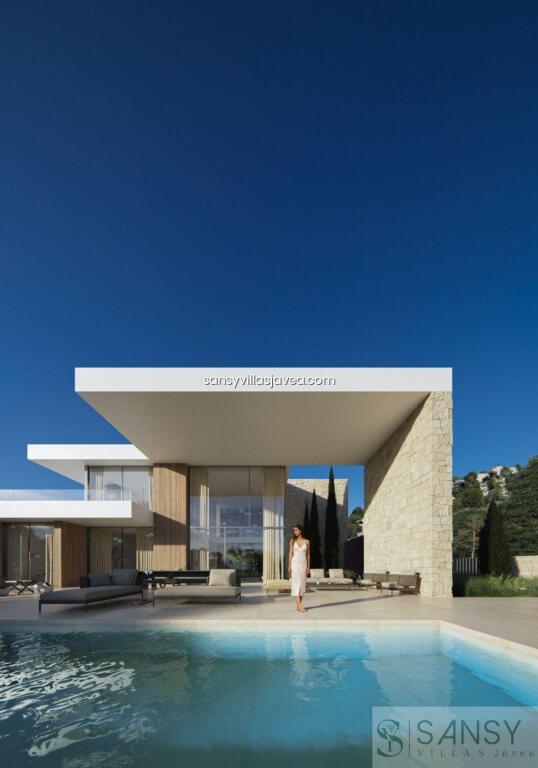 Villa 4 dormitorios, 5 baños, 0 garajes, Buen estado, en Teulada, Alicante Chalet moderno de obra nueva en venta en Moraira. Este chalet que estará finalizado a mediados de 2025 se construye sobre una parcela de 1.601m².Situado en lo alto de una colina, domina las vistas sobre todo su entorno.Se ha cuidado mucho el diseño y los materiales. La viviendase distribuye en 3 plantas de un total de 350m² conectadas por un ascensor.Laplanta baja es diáfanae integra el salón-comedor, unacocina equipada con eletrodomésticos de alta calidad y 3 dormitorios con baño en-suite. En esta planta también se encuentra la terraza con piscina infinitay una pérgola.La planta alta es única y exclusivamente para el dormitorio principal. En la planta semi-sótano se encuentra el garage de 51 m² con acceso exterior e interior por escaleras y ascensor. En este nivel también hay dos cuartos,para la depuradora y el local técnico.
