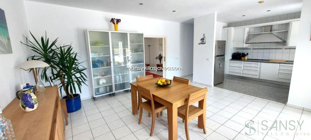 Villa 6 dormitorios, 4 baños, 1 garajes, Buen estado, en Moraira, Alicante Bonita moderna orientación sur con un apartamento independiente de dos dormitorios ubicado en el atractivo barrio de Sol Park, Moraira. Se accede a la villa a través de la puerta de entrada al hall de entrada. Arriba al primer piso, lo lleva al dormitorio principal con aire acondicionado empotrado, vestidor y baño en suite. También hay acceso a un gran balcón/terraza privada con una pequeña vista al mar. En la planta baja encontrará la cocina/comedor de planta abierta con acceso de doble puerta a la terraza cubierta, con comedor exterior y sala de estar. Justo al lado del comedor está el salón con sofá, sillas, televisión y aire acondicionado. También en este nivel hay un gran dormitorio (que tiene la posibilidad de convertirse en 2 dormitorios), actualmente acondicionado como dormitorio y 2º salón dividido por armarios altos. Hay un baño situado frente al dormitorio. En la planta baja se encuentran el 2 dormitorios ambos dobles y armarios empotrados , con aire acondicionado y compartiendo el baño grande. El apartamento se encuentra en planta semisótano con acceso propio desde la zona de aparcamiento. El apartamento tiene un salón/cocina, lavadero, baño y 2 habitaciones dobles. El salón y 1 dormitorio cuentan con aire acondicionado. En el exterior hay aparcamiento para 3 o 4 coches con puerta automática y puerta peatonal separada al lado. Hay una gran piscina/solárium con orientación sur abierta, piscina de 10 x 4 m, aseo y ducha solar y barbacoa de obra. El resto de los terrenos están hechos a un estilo de jardín mediterráneo con árboles frutales y palmeras.