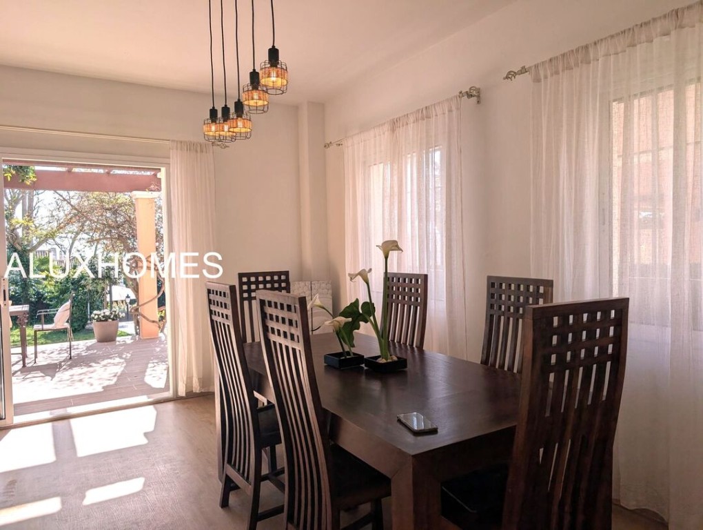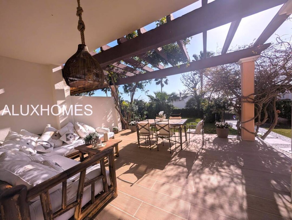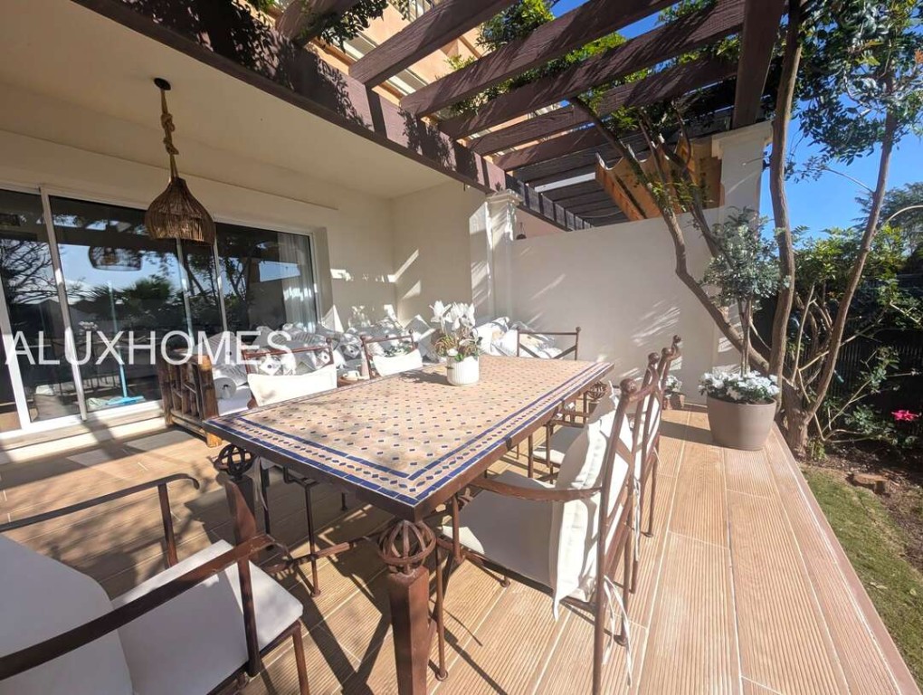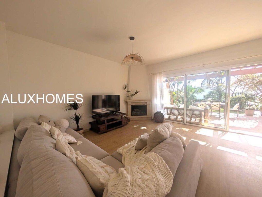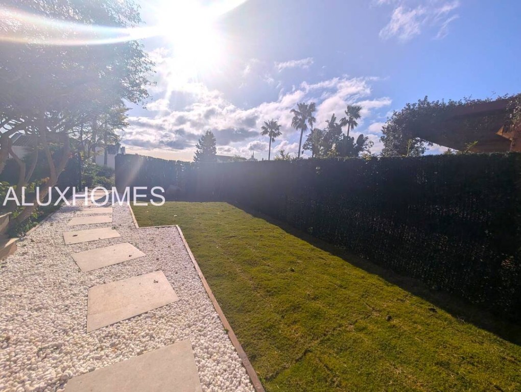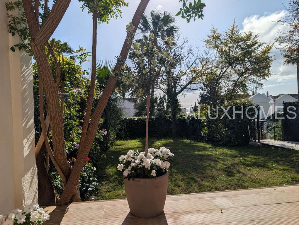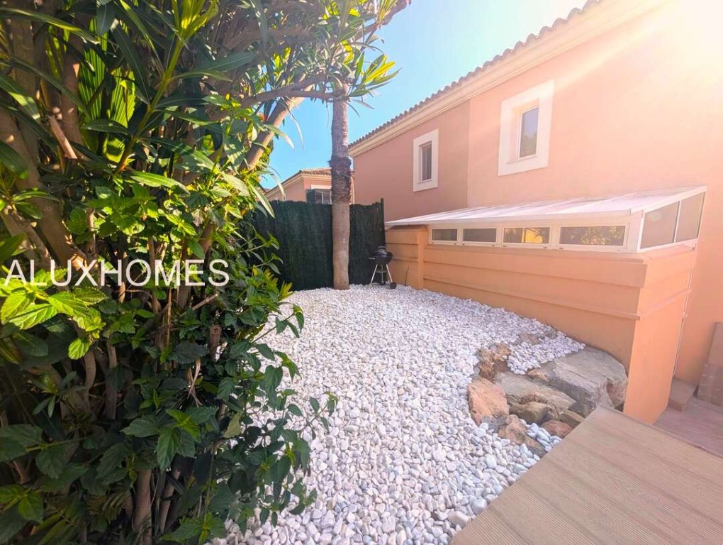 Luz, Mar y Calma: El refugio mediterráneo que buscabas en Alcaidesa Hay casas que te abrazan nada más entrar, y esta pareada en Jardines de Alcaidesa es, sin duda, una de ellas. Reformada íntegramente con un gusto exquisito, aquí el blanco mediterráneo y la luz del sur son los verdaderos protagonistas. La esencia del exterior Imagina despertar con el aroma del salitre y disfrutar de un café en tu jardín privado. Un espacio lateral y frontal perfectamente cuidado que rodea la vivienda, ideal para cenas bajo las estrellas o tardes de sol en total privacidad. Su orientación sur garantiza luminosidad durante todo el día y esas vistas al azul del mar que invitan a la desconexión absoluta. Interiores que enamoran La vivienda se distribuye en dos plantas diseñadas para la vida cómoda y elegante: Planta Principal: Un acogedor salón-comedor con chimenea para los atardeceres de invierno, con salida directa a la terraza y al jardín. Cocina moderna y funcional con zona de lavandería independiente y un baño completo con ducha. Planta Superior: La zona de descanso cuenta con 3 dormitorios radiantes. Dos de ellos disponen de su propia terraza privada con vistas al mar, el lugar perfecto para contemplar el horizonte antes de dormir. Armarios empotrados y dos baños completan esta planta. Detalles que marcan la diferencia Reforma total: Estilo minimalista y cálido. Parking privado exterior (posibilidad de techar). Ubicación privilegiada: A un paseo de la playa y rodeado de los mejores campos de golf de la zona. Ubicación y Conectividad (Distancias estimadas) Playa de Alcaidesa: 800 m (Un agradable paseo de 10-12 min o 2 min en coche). La Hacienda Links Golf Resort: 1,2 km (3 min en coche). Sotogrande International School (SIS): 11 km (12-15 min en coche). Puerto de Sotogrande: 12 km (15 min en coche). Gibraltar (Frontera/Aeropuerto): 18 km (20-25 min en coche). Marbella / Puerto Banús: 55 km (40 min por la AP-7). Málaga (Aeropuerto / AVE): 110 km (1h 10 min por la AP-7) En Alcaidesa, el lujo no es solo la casa, es el estilo de vida. Ven a sentir la paz de este rincón único. Aluxhomes.com | Tu hogar, nuestra pasión.