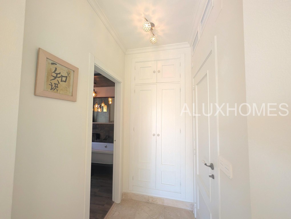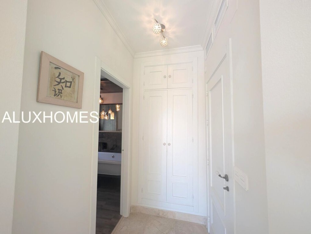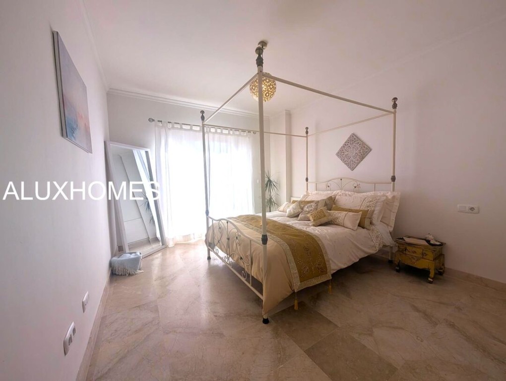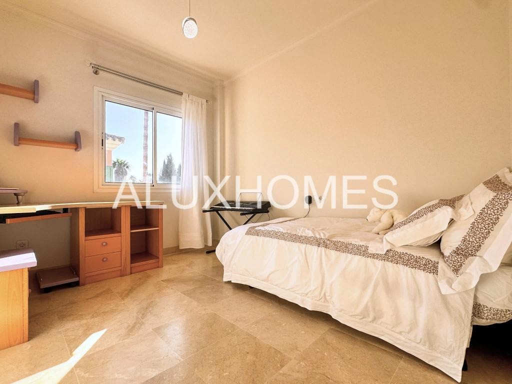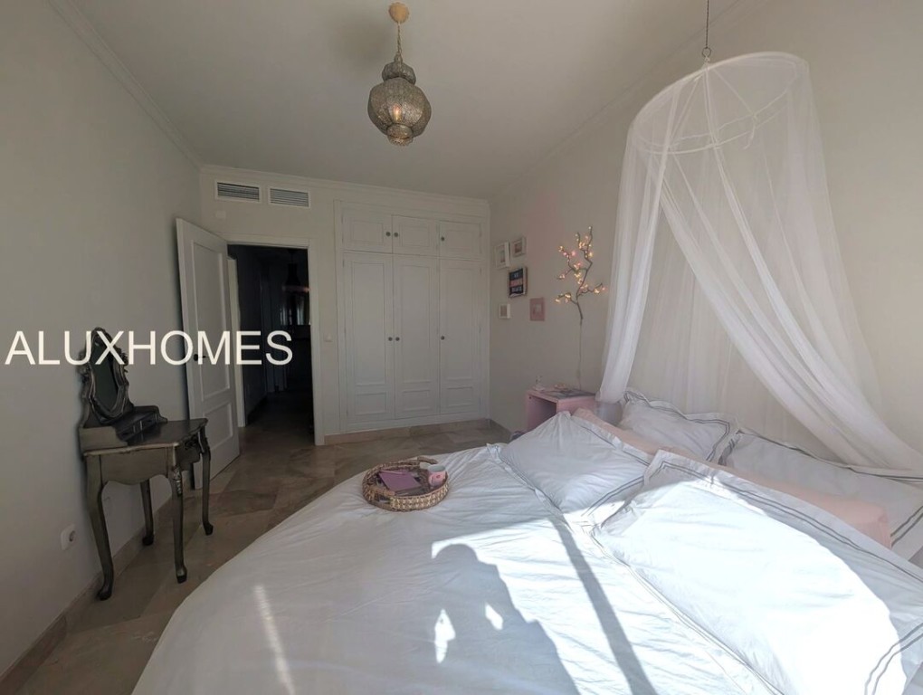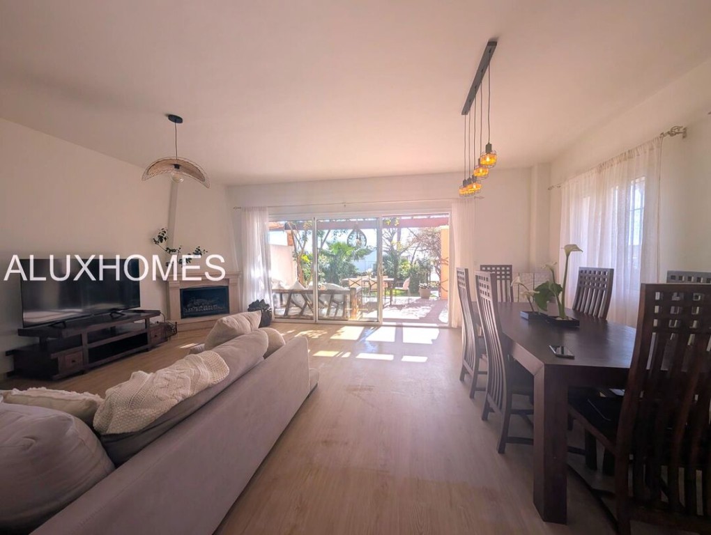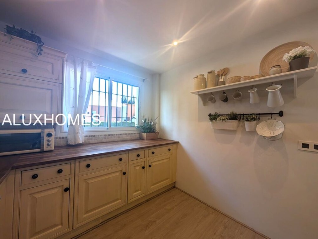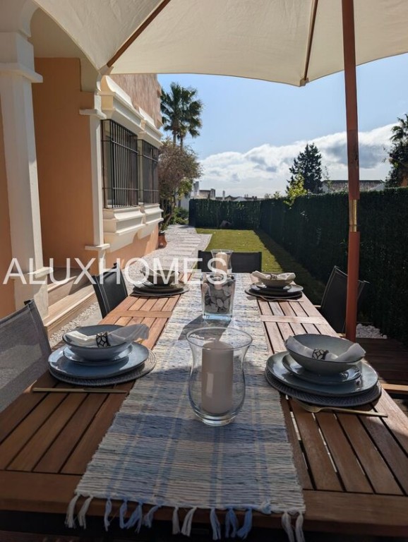 Luz, Mar y Calma: El refugio mediterráneo que buscabas en Alcaidesa Hay casas que te abrazan nada más entrar, y esta pareada en Jardines de Alcaidesa es, sin duda, una de ellas. Reformada íntegramente con un gusto exquisito, aquí el blanco mediterráneo y la luz del sur son los verdaderos protagonistas. La esencia del exterior Imagina despertar con el aroma del salitre y disfrutar de un café en tu jardín privado. Un espacio lateral y frontal perfectamente cuidado que rodea la vivienda, ideal para cenas bajo las estrellas o tardes de sol en total privacidad. Su orientación sur garantiza luminosidad durante todo el día y esas vistas al azul del mar que invitan a la desconexión absoluta. Interiores que enamoran La vivienda se distribuye en dos plantas diseñadas para la vida cómoda y elegante: Planta Principal: Un acogedor salón-comedor con chimenea para los atardeceres de invierno, con salida directa a la terraza y al jardín. Cocina moderna y funcional con zona de lavandería independiente y un baño completo con ducha. Planta Superior: La zona de descanso cuenta con 3 dormitorios radiantes. Dos de ellos disponen de su propia terraza privada con vistas al mar, el lugar perfecto para contemplar el horizonte antes de dormir. Armarios empotrados y dos baños completan esta planta. Detalles que marcan la diferencia Reforma total: Estilo minimalista y cálido. Parking privado exterior (posibilidad de techar). Ubicación privilegiada: A un paseo de la playa y rodeado de los mejores campos de golf de la zona. Ubicación y Conectividad (Distancias estimadas) Playa de Alcaidesa: 800 m (Un agradable paseo de 10-12 min o 2 min en coche). La Hacienda Links Golf Resort: 1,2 km (3 min en coche). Sotogrande International School (SIS): 11 km (12-15 min en coche). Puerto de Sotogrande: 12 km (15 min en coche). Gibraltar (Frontera/Aeropuerto): 18 km (20-25 min en coche). Marbella / Puerto Banús: 55 km (40 min por la AP-7). Málaga (Aeropuerto / AVE): 110 km (1h 10 min por la AP-7) En Alcaidesa, el lujo no es solo la casa, es el estilo de vida. Ven a sentir la paz de este rincón único. Aluxhomes.com | Tu hogar, nuestra pasión.