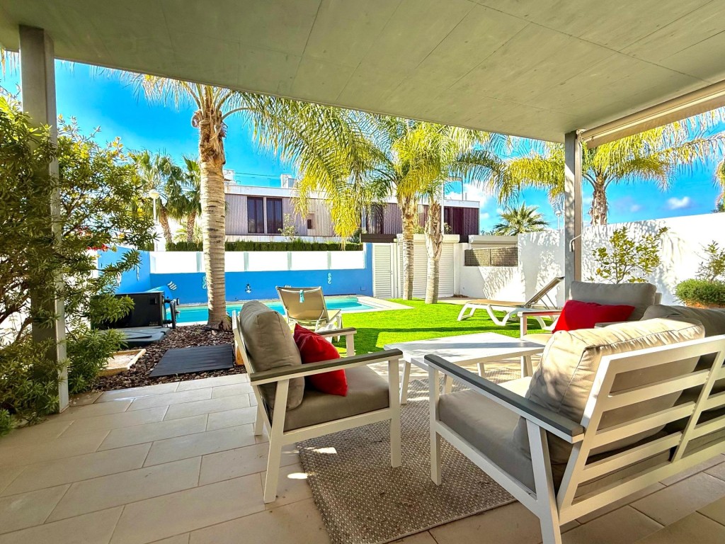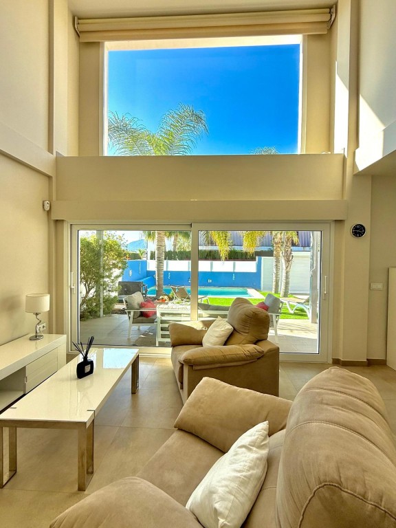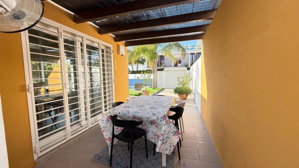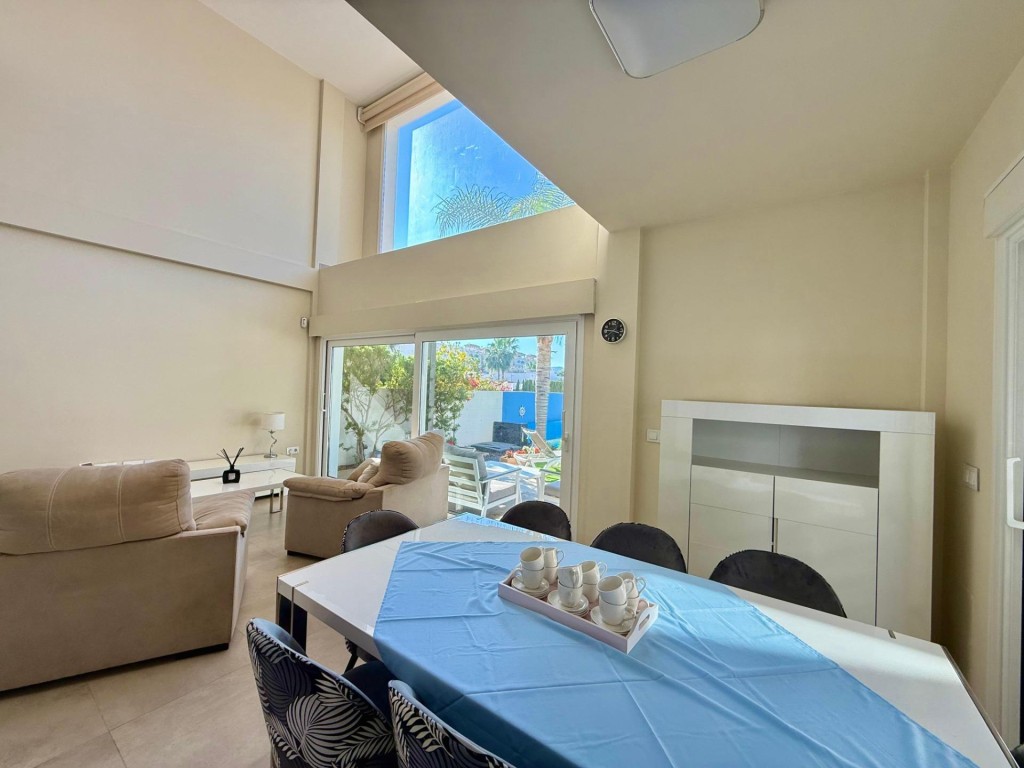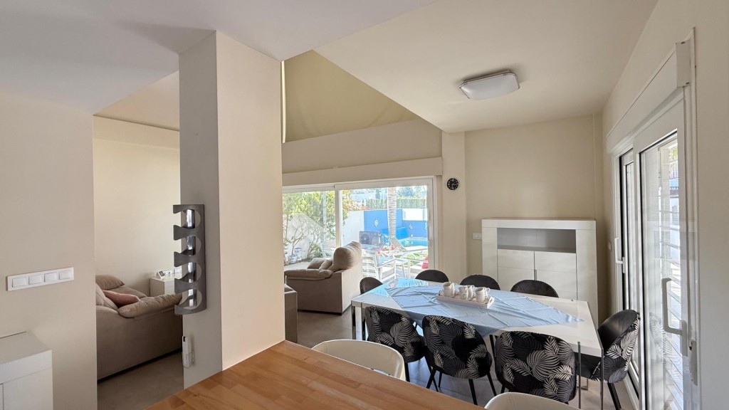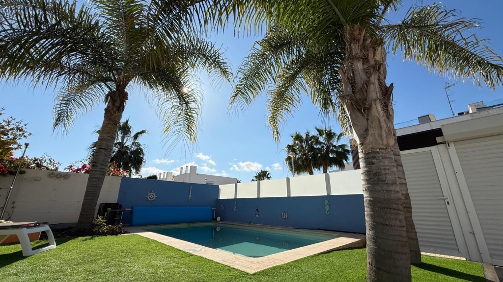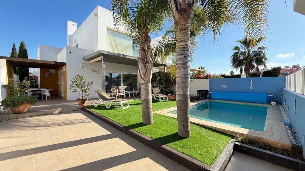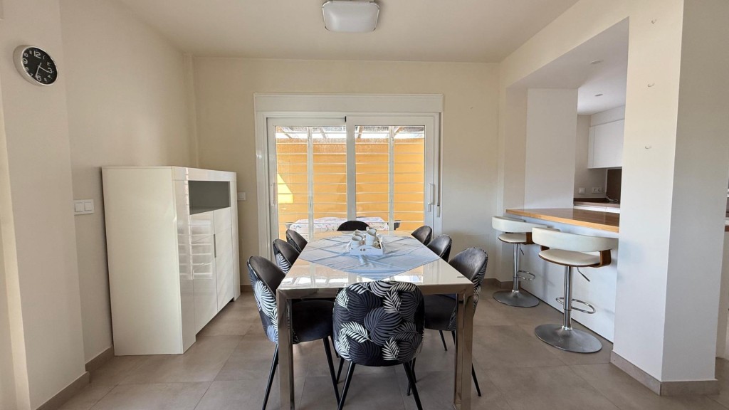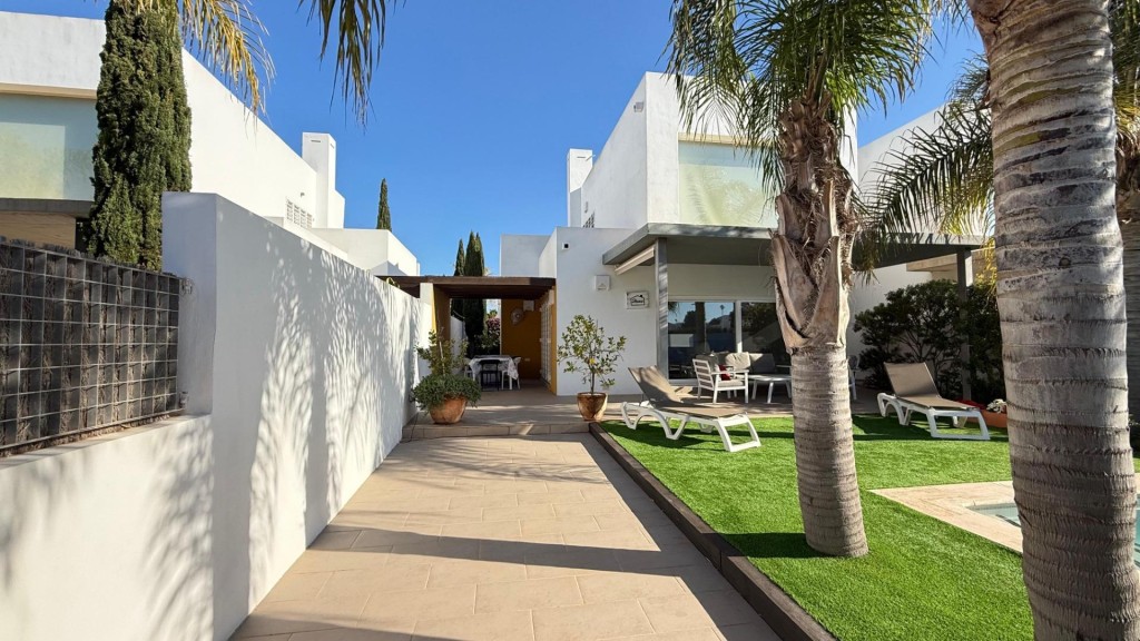 En una de las zonas más agradables y tranquilas del litoral de Cartagena se encuentra esta elegante villa independiente de estilo moderno, situada en la localidad costera de Mar de Cristal. Una vivienda pensada para disfrutar del clima mediterráneo durante todo el año, donde el diseño contemporáneo, la comodidad y los espacios exteriores se integran a la perfección.La propiedad se asienta sobre una parcela de 277 m2 y cuenta con 100 m2 construidos, distribuidos en dos plantas con techos altos que aportan amplitud y una magnífica entrada de luz natural.Distribución interiorEn la planta principal encontramos:•Dos amplios dormitorios.•Un baño completo.•Un espacioso salón-comedor con cocina integrada y península, creando un ambiente moderno y funcional perfecto para la vida diaria y para recibir invitados.•La vivienda se vende totalmente amueblada con mobiliario nuevo de estilo contemporáneo, cuidadosamente elegido para mantener la estética moderna de la casa.En la planta superior se sitúa una elegante suite privada, que dispone de:•Dormitorio principal.•Vestidor.•Baño completo.•Acceso directo a terraza privada, ideal para disfrutar de la brisa del Mar Menor.Espacios exteriores diseñados para disfrutarEl exterior de la vivienda está especialmente cuidado y dividido en dos ambientes diferenciados:Comedor de veranoCon acceso directo desde la cocina o el salón, perfecto para comidas al aire libre y reuniones familiares.Zona chill-out junto a la piscinaEn la parte frontal de la vivienda encontramos un agradable espacio de relax con mesa, sillas y hamacas, junto a la piscina privada con cubierta, rodeada de jardín con flores y árboles.Además, la propiedad dispone de:•Orientación sureste, ideal para aprovechar al máximo la luz solar.•Sistema de alarma.•Pequeño patio trasero.•Jardín privado de bajo mantenimiento.Ubicación privilegiada en el Mar MenorMar de Cristal es una de las localidades más apreciadas del Mar Menor por su tranquilidad, sus playas de aguas tranquilas y su ambiente familiar. El pueblo cuenta con todos los servicios necesarios:•Centro médico•Farmacia•Restaurantes y cafeterías•Supermercados•Paseo marítimo•Puerto Deportivo de Mar de CristalAdemás, su ubicación permite disfrutar de algunos de los destinos más atractivos de la zona:•7 km de Cabo de Palos, famoso por su gastronomía y su puerto pesquero.•25 km del centro histórico de Cartagena, ciudad con más de 3.000 años de historia.•Aproximadamente 49 km del Aeropuerto Internacional de la Región de Murcia.•A solo 10 km del prestigioso resort de golf La Manga Club, uno de los complejos deportivos más exclusivos de Europa.Una villa perfecta tanto como residencia habitual, casa de vacaciones o inversión inmobiliaria en la Costa Cálida.Gastos compraventa y honorarios agencia no incluidos en el precio