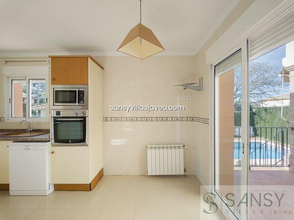 Villa 5 dormitorios, 4 baños, 1 garajes, Buen estado, en Dénia, Alicante Preciosa villa en venta en Denia construida con materiales de alta calidad y ubicada en una de las mejores zonas residenciales, donde disfrutarás de sol durante todo el año y de sus bonitas vistas al Montgó. La vivienda se encuentra en una zona muy tranquila y muy bien comunicada con el pueblo y todos los servicios. En el exterior podemos encontrar un jardín de fácil mantenimiento, piscina con zona de barbacoa, una terraza cubierta, espacio para aparcar coches y garaje doble. La vivienda se distribuye en 3 plantas todas ellas comunicadas mediante escalera interior del siguiente modo Planta principal esta formada por hall de entrada, salón comedor con chimenea y con salida directa a una terraza cubierta, cocina office totalmente equipada y también con acceso directo a la misma terraza cubierta, dormitorio principal con vestidor y baño en suite, otro dormitorio y un baño. Planta Alta dormitorio doble con vestidor, baño y terraza con preciosas vistas al Montgó. Planta semisótano garaje doble, lavadero, 2 dormitorios dobles con armarios empotrados y 1 baño. La vivienda está equipada entre otros muchos extras con calefacción central mediante depósito de gasóleo, aire acondicionado frio-calor por split y está en perfecto estado para entrar a vivir. Una vivienda difícil de encontrar con estas características .