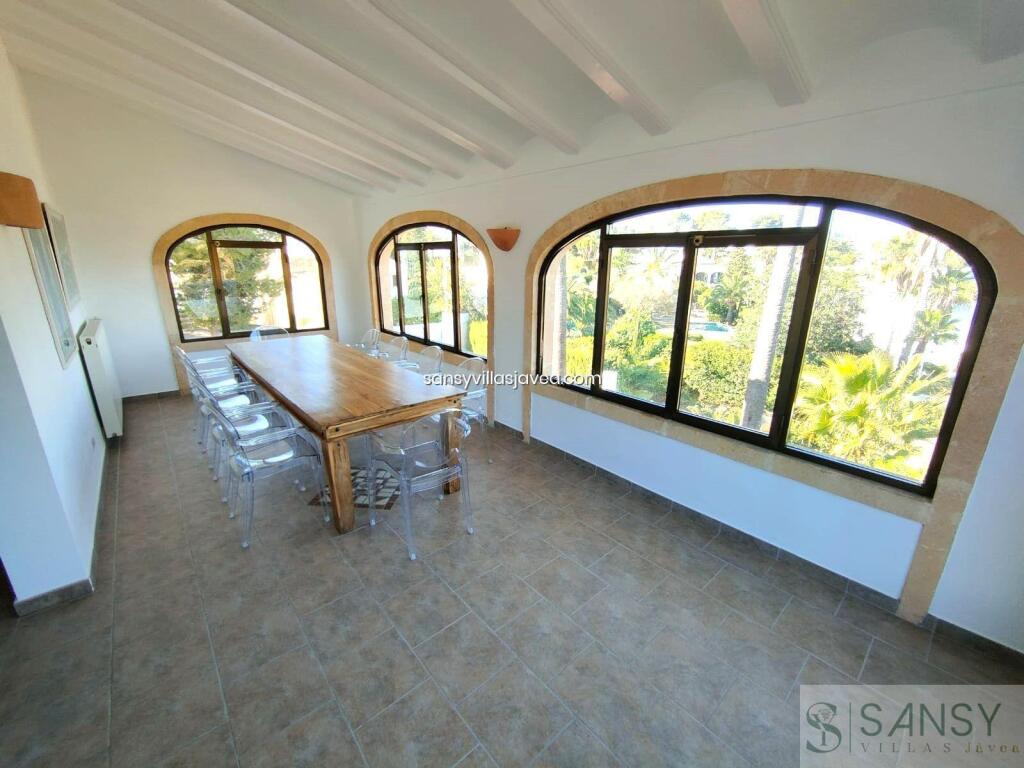 Villa 5 dormitorios, 3 baños, 0 garajes, Buen estado, en Jávea-Xàbia, Alicante Bienvenido a esta joya arquitectónica, un hermoso chalet que encarna la serenidad y la exclusividad. Este refugio privado, rodeado por una imponente valla, se presenta como un oasis de tranquilidad con un jardín exquisitamente fácil de mantener. Al entrar en este paraíso de dos plantas, la planta baja le da la bienvenida con un amplio hall que conecta con tres dormitorios dobles, cada uno diseñado para la máxima comodidad. Uno de ellos se distingue por su lujoso vestidor y un baño en suite, mientras que los demás cuentan con armarios empotrados para satisfacer todas sus necesidades de almacenamiento. Además, encontrará un baño completo y un aseo, garantizando la practicidad y la comodidad en cada rincón. La cocina de verano se convierte en el corazón de la vivienda, ofreciendo una conexión directa con la piscina y el jardín, creando un espacio perfecto para disfrutar de momentos inolvidables al aire libre. Subiendo a la planta superior, se revelan otros dos dormitorios dobles, cada uno con armarios empotrados y balcones que ofrecen vistas cautivadoras. El gran salón, iluminado por ventanales que permiten la entrada abundante de luz natural, se destaca por su chimenea, creando un ambiente cálido y acogedor. El comedor, que se abre a la cocina con una elegante barra americana, forma el escenario perfecto para encuentros familiares y cenas memorables. Además, una enorme naya acristalada y cerrada ofrece vistas panorámicas impresionantes, creando un espacio adicional para la relajación y el deleite visual. Descendiendo por una escalera exterior, se accede al exquisito jardín con una zona de pérgola y una tentadora piscina, creando un rincón paradisíaco para disfrutar de la vida al aire libre. Este chalet es más que una casa es un hogar diseñado para acomodar a una familia grande o a aquellos que buscan un espacio generoso y bien distribuido. Experimente la amplitud, la elegancia y la comodidad en cada rincón de esta propiedad, que seguramente satisfará los más altos estándares de quienes buscan un estilo de vida exclusivo y sereno. FECHAS Y PRECIOS A CONSULTAR.