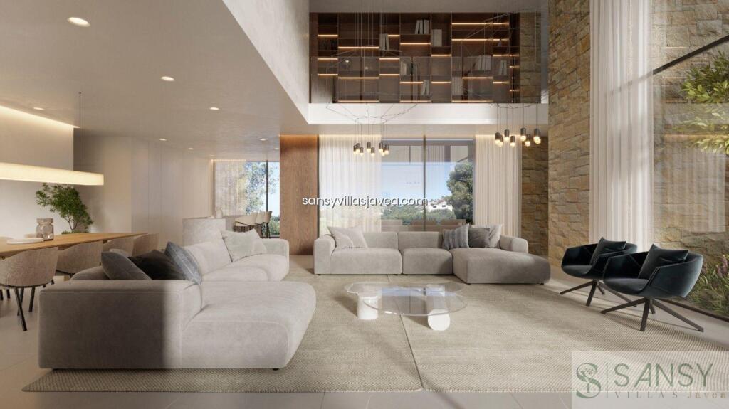Villa 4 dormitorios, 5 baños, 0 garajes, Buen estado, en Teulada, Alicante Chalet moderno de obra nueva en venta en Moraira. Este chalet que estará finalizado a mediados de 2025 se construye sobre una parcela de 1.601m².Situado en lo alto de una colina, domina las vistas sobre todo su entorno.Se ha cuidado mucho el diseño y los materiales. La viviendase distribuye en 3 plantas de un total de 350m² conectadas por un ascensor.Laplanta baja es diáfanae integra el salón-comedor, unacocina equipada con eletrodomésticos de alta calidad y 3 dormitorios con baño en-suite. En esta planta también se encuentra la terraza con piscina infinitay una pérgola.La planta alta es única y exclusivamente para el dormitorio principal. En la planta semi-sótano se encuentra el garage de 51 m² con acceso exterior e interior por escaleras y ascensor. En este nivel también hay dos cuartos,para la depuradora y el local técnico.