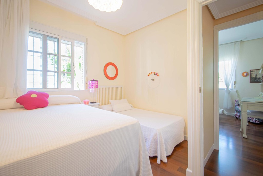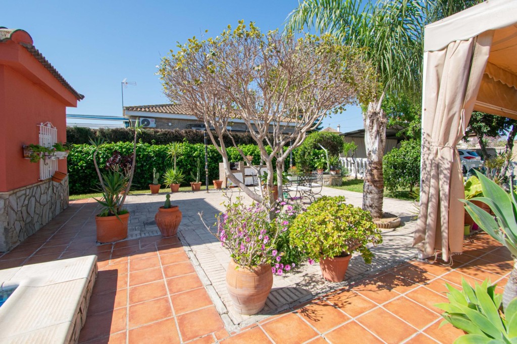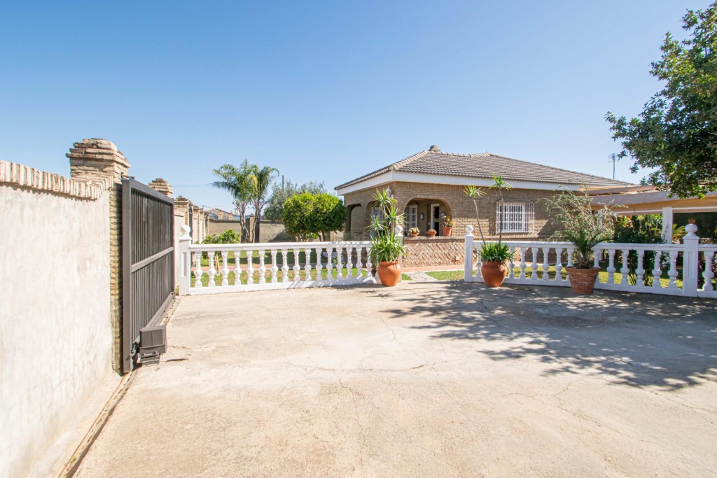 Magnífico chalet independiente, de una sola planta, de esquina, situado en la Urbanización Tarazona, en muy buen estado de conservación y con una excelente luminosidad.La vivienda dispone de 241m2 construidos totales, a ella accedemos a través de un precioso porche.Cuenta con amplio salón con chimenea, cómodo, acogedor y confortable.La cocina es independiente y se encuentra amueblada, con muebles de madera noble, con zona comedor, muy amplia y cómoda.Sus 4 dormitorios, amplios y luminosos y sus 2 baños exteriores y completos, uno con bañera y otro con placa de ducha. Además hay una zona perfecta como vestidor/cuarto de plancha....Cuenta con acabados de excelente calidad, como suelo de tarima, excepto en baños y cocina, donde el suelo es cerámico, puertas de madera lacada en blanco y pintura lisa en paredes, ventanas de aluminio lacado en blanco con rejas.En cuanto al confort, ofrece aire acondicionado centralizado, además de split frío/calor en el salón y en la cocina.En el exterior, la parcela destaca por sus cuidados espacios, con piscina, caseta de almacenaje, zonas verdes muy bien mantenidas y porche trasero con vistas hacia la piscina, con pérgola, ideal para disfrutar del aire libre. Además, dispone de aparcamiento en superficie para 4 vehículos.Muy bien comunicada, con rápida conexión a la autovía A-4, a solo 9 minutos en coche del Aeropuerto de Sevilla y a 9 minutos del centro comercial Sevilla Fashion Outlet.Una vivienda ideal para quienes buscan tranquilidad sin renunciar a la cercanía de la ciudad.No deje pasar esta magnífica oportunidad, solicite visita hoy mismo!!!En cumplimiento de las obligaciones de información previstas Disp. final 3ª de la Ley 10/2025, de 28 de diciembre, de servicios de atención a la clientela y transparencia, así como en la normativa sectorial vigente, y RD 218/2005 de Inf. de la Junta de Andalucía, el precio indicado no incluye los gastos e impuestos inherentes a la adquisición, los cuales se desglosan estimados o con posibilidad de calcularlos a continuación; los gastos más ajustados serán dados en el D.I.A./F.I.S. en la visita a inmuebles, o antes.*Gastos de Notaría: La Minuta se calculará según al arancel notarial oficial: Anexo I, del Real Decreto 1426/1989, de 17 de noviembre del portal del Notariado. Enlace: https://notariared.com/calculadora-gastos-compra-vivienda/*Gastos de Registro de la Propiedad: La inscripción se facturará según el arancel oficial: ANEXO I, del Real Decreto 1427/1989, de 17 de noviembre. Igual enlace anterior*Gastos de Gestión (Gestoría): Los honorarios por la tramitación administrativa, liquidación de impuestos e inscripción registral ascienden de forma estimativa a [363 € aprox.] (IVA incluido), aunque depende de cada caso, y su dificultad.*Honorarios Agencia del Vendedor: incluidos en el PVP.*Honorarios Agencia del Comprador: 3% + IVA (21%) no incluido en el PVP.- La agencia prestará los servicios de mediación, asesoramiento y acompañamiento previstos en el Contrato de Prestación de Servicios y en el D.I.A./F.I.S. Si solicita servicios adicionales o personalizados, sus honorarios serán informados previamente, de forma individualizada y por escrito, conforme a la libertad de pactos y a la normativa vigente.*Si necesita Financiación: su banco le informará*Impuesto sobre Transmisiones Patrimoniales (ITP): Se aplicará el tipo impositivo vigente en Andalucía (generalmente el 7%, sin perjuicio de tipos reducidos del 6%. 3,5%, etc, aplicables según las circunstancias personales del comprador o las características del inmueble). El impuesto se devenga sobre el superior entre: 1.- Valor de Referencia de Catastro; y 2.- Precio de venta. Puede calcular su situación personal en el portal oficial de la A.T. de Andalucia. Enlace: https://www.juntadeandalucia.es/organismos/economiahaciendayfondoseuropeos/areas/tributos-juego/tributos/paginas/impuestos-cedidos-transmisiones.html