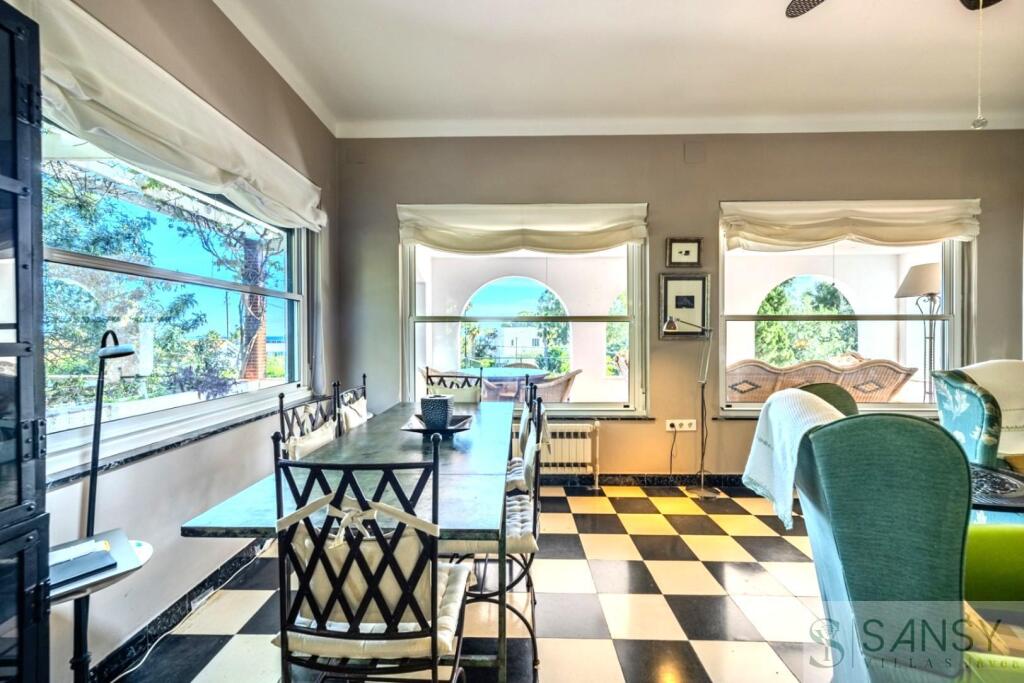 Chalet Unifamiliar, 4 dormitorios, 3 baños, 1 garajes, Nuevo, en Dénia, Alicante Chalet con magnificas vistas a la bahia de Denia , cerca de la playa de las Rotas.Vivienda de estilo mediterráneo con encanto, la casa está rodeada con un gran jardín con árboles, alguno de ellos centenarios donde se pueden encontrar varios rincones agradables con sombra.Se accede a la vivienda por un amplio porche con espléndidas vistas al mar. La planta baja consta de un acogedor salón comedor con chimenea y amplios ventanales sobre el jardín generando una mbiente tranquilo en cualquier época del año.Dispone en planta baja de 3 dormitorios dobles con armarios empotrados y 2 cuartos de baños completos, uno en el pasillo y otro en suite en el dormitorio principal . Todas las estancias tienen ventanas.Una escalera interna conduce al cuatro dormitorio con espectaculares vistas sobre la bahía. Desde ahí se accede a la azotea, también con magníficas vistas al mar.En la planta baja hay una amplia cocina desde donde se accede a la parte trasera del jardín con comedor y terraza. En el exterior existe un tercer baño completo.Una propiedad realmente especial con personalidad y encanto, situada enla mejor ubicación de Las Rotas, frente a la Marineta Cassiana (playa de arena) a 2 pasos del mar y muy cerca del Club Naútico y del centro urbano.
