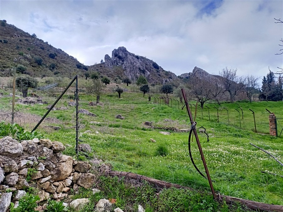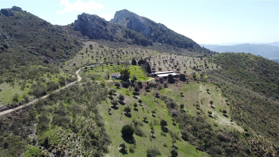 El terreno tiene más de 150 ha: en parte llano, con zonas de pastos; en parte con algo de pendiente; y en otra parte con pendiente alta en una zona de montañas más rocosas que conforma la divisoria de aguas de los valles del Genal y del Guadiaro.
