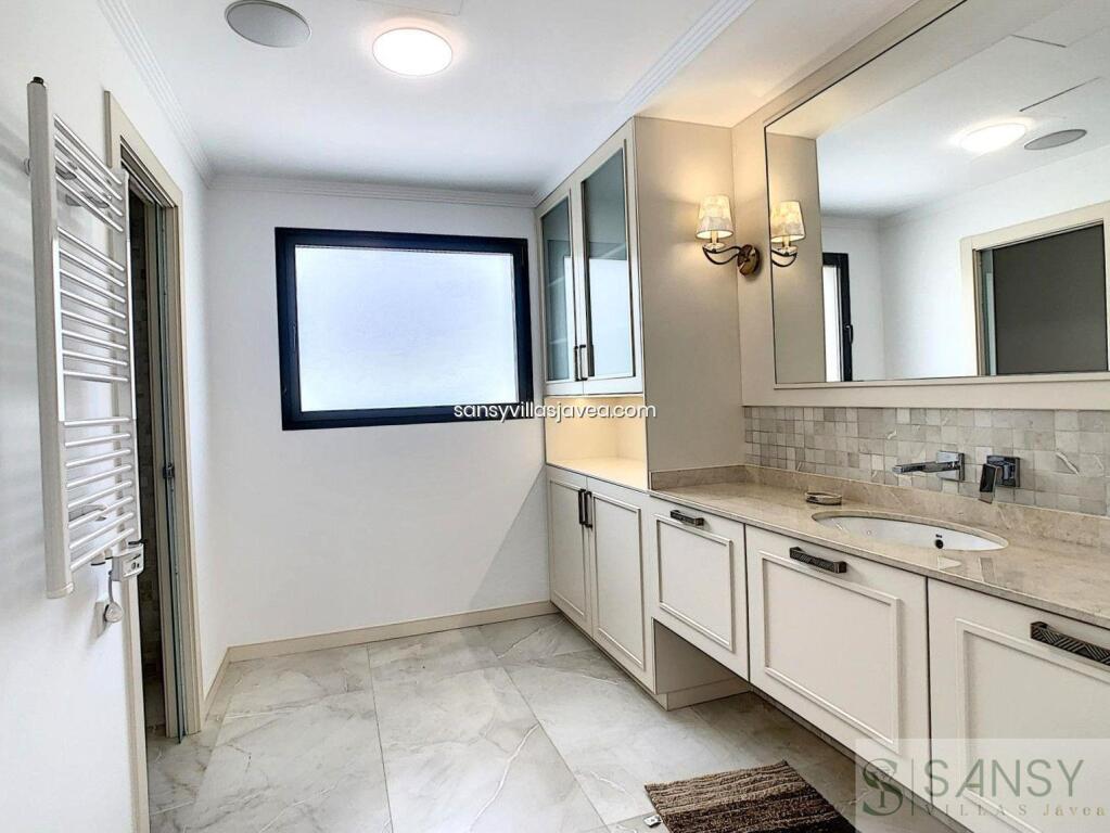 Villa 4 dormitorios, 3 baños, 0 garajes, Buen estado, en Benitachell, Alicante Esta villa, prácticamente nueva, se encuentra en la zona residencial Cumbre del Sol en Benitachell, a tan solo 3 km de la preciosa playa llamada, ´Cala Moraig´. La Cumbre del Sol es una zona residencial situada en las colinas de la costa de Benitachell, situada entre los pueblos costeros Moraira y Jávea, y ofrece a sus habitantes unas preciosas vistas al mar Mediterráneo y sus alrededores. Dentro de este lujoso entorno de vida, además cuenta con todos los servicios como restaurantes, instalaciones deportivas y recreativas como pistas de tenis, pádel, escuela de equitación, escuela internacional, farmacia, etc. Moraira y Jávea están a sólo unos minutos en coche. La villa es prácticamente nueva, la elección de los materiales elegidos y sus acabados hablan por sí mismo. Se accede a la propiedad a través de una puerta corredera eléctrica con puerta peatonal, aquí encontramos una plaza de parking con pérgola. Desde el parking se entra en el jardín y se accede a la vivienda que consta de - entrada - amplio y luminoso salón / comedor con estupendas vistas al mar - cocina semiabierta y totalmente equipada - aseo de invitados - 3 dormitorios, uno de ellos con baño privado Desde hay acceso directo a la terraza y piscina. A través de la escalera exterior se llega a la planta baja donde encontramos la casa de invitados que consta de - hall - amplio dormitorio - baño - vestidor También hay un lavadero y trastero separadoenestenivel.
