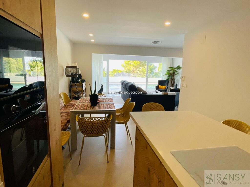Villa 3 dormitorios, 3 baños, 0 garajes, Buen estado, en Dénia, Alicante Denia, chalet a estrenar en el Montgó -Marquesa IV, con vistas al parque natural del Montgo y vistas panorámicas al mar. Rodeado de naturaleza y con la tranquilidad que ofrece la zona residencial con vecindario durante todo el año. A 5 minutos en coche del centro de Denia y del puerto deportivo y Club Naútico, El chalet es de nueva construcción sobre parcela de 900m2, con piscina privada de 3,80 x 9 m que se encuentra sobre terraza a nivel del mismo salón comedor. En la planta baja encontramos, 2 dormitorios cada uno con su baño privado, salón comedor, cocina con isla totalmente equipada, aseo y terrazas. Desde la misma planta se accede a planta primera donde encontramos dormitorio master, con baño privado y terraza de unos 10 m2 con magníficas vistas. Extras domótica, aa por conductos, suelo cerámicos de alta calidad, armarios empotrados, zona lavandería, zona barbacoa, parking y zona sótano bajo la piscina que hace de almacén o cuarto de herramientas. En la parcela hay un bonito jardín con frutales, palmeras y una gran variedad de plantas.