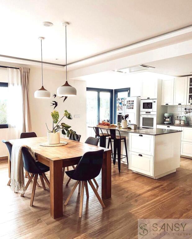Chalet Independiente, 4 dormitorios, 4 baños, 2 garajes, Seminuevo, en Jávea-Xàbia, Alicante Moderno chalet en una zona residencial cerca del arenal y comercios .La vivienda ofrece placas solares para el ahorro energético y un dry sistema en toda la vivienda , para que su casa siempre este seca de humildades. Se distribuye en dos plantas ,comunicada por el interior , el luminoso salón/comedor se encuentra en la primera planta con cocina abierta totalmente equipada y salida a la terraza cubierta que se comparte también con el salón. En la misma planta encontramos 2 dormitorios dobles el principal en suite y uno de con vestidor. Uno de los dormitorios se esta usando actualmente como gimnasio , 1 baño de cortesía .En la planta baja hay 2 dormitorios dobles con armarios empotrados y dos baño con ducha a ras del suelo. Una cocina americana equipada y una sala de estar. El jardín con un atmósfera de oasis de muy fácil mantenimiento , amplias terraza alrededor de la piscina y una fantástica zona con cocina de verano para disfrutar con invitados o familiares de buenos momentos .Esta casa dispone de mucho confort y elegancia , esta podría ser su casa , solicite visita y información sin compromiso !!!!!