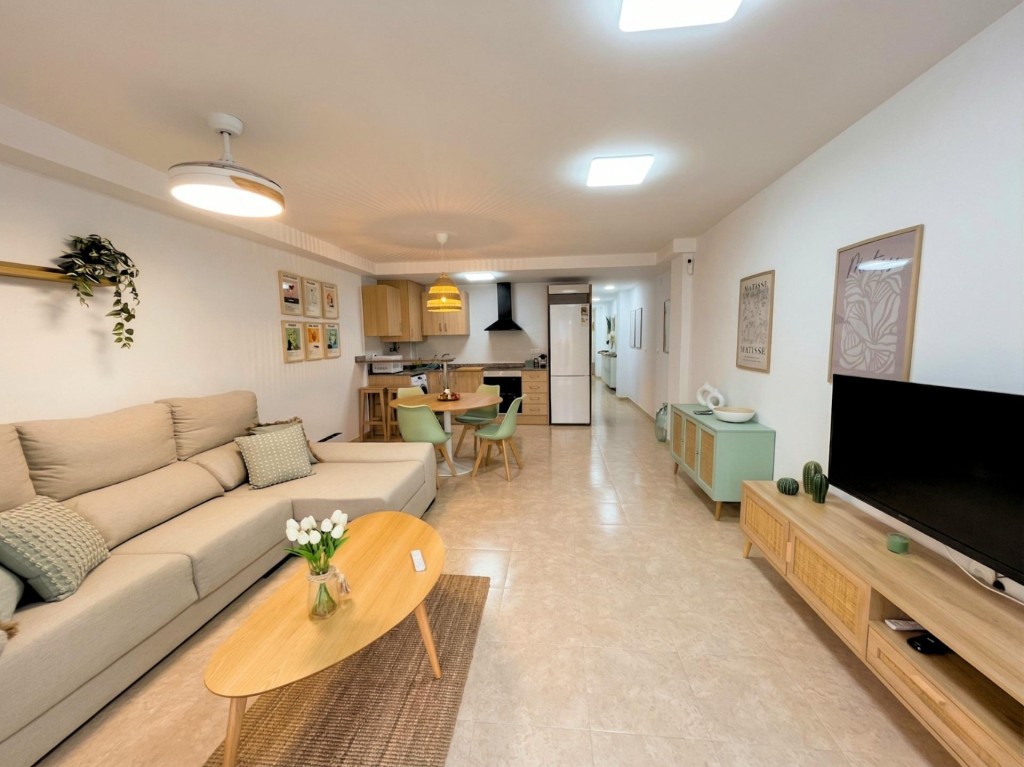Inmobiliaria Red Asesora ofrece este acogedor apartamento situado en segunda línea de playa en Moncofa, una excelente oportunidad tanto como vivienda habitual, segunda residencia o inversión junto al mar.La vivienda cuenta con 74 m2 construidos y se encuentra en planta baja, con orientación Este, lo que aporta una temperatura agradable durante gran parte del año. El apartamento dispone de un luminoso salón con cocina integrada en un mismo espacio funcional y cómodo, dos habitaciones dobles con armarios empotrados y un cuarto de baño completo con ducha. La habitación principal tiene acceso directo a un agradable patio interior, aportando un espacio extra de ventilación y desahogo.Además, la vivienda dispone de una terraza de 15 m2 con acceso independiente, plaza de garaje incluida, sistema de alarma instalado y puerta blindada, ofreciendo mayor seguridad y confort. Se vende completamente amueblado de diseño y equipado con calidades altas, listo para entrar a vivir desde el primer día.Destaca especialmente que se trata de un apartamento prácticamente de reestreno, ya que apenas ha sido habitado, lo que lo convierte en una opción muy interesante dentro de la zona. Está ubicado en una zona tranquila, bien comunico y en segunda linea de mar ideal para disfrutar de la playa y del entorno durante todo el año.Una vivienda acogedora, bien cuidada y con muy buena ubicación, perfecta para quienes buscan comodidad y calidad de vida junto al mar.