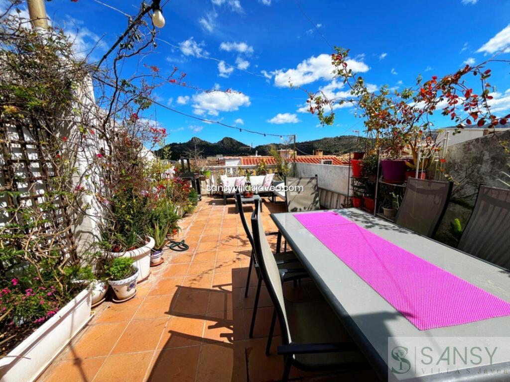 Casa 3 dormitorios, 2 baños, 0 garajes, Buen estado, en Pedreguer, Alicante Esta luminosa vivienda de 210 m² construidos (180 m² útiles + 30 m² de terraza) se ubica en una zona tranquila del municipio, ideal para disfrutar de la calma sin renunciar a las comodidades. Reformada con gusto, conserva su esencia original gracias a una bonita fachada de piedra y acabados cuidados. En la planta baja dispone de un amplio salón-comedor con chimenea de leña, cocina moderna con office, entrada de luz natural y un cómodo baño doble. La primera planta cuenta con dos habitaciones dobles, un baño completo compartido y dos prácticos roperos empotrados. En la planta superior encontrarás una versátil zona de trabajo o estudio, perfecta para adaptarse a tus necesidades, que conecta con la tercera habitación doble y da acceso a una impresionante terraza de 30 m² con vistas abiertas al mar y a la montaña. Equipada con 3 aires acondicionados frío/calor, estufa de leña y cerramientos con doble acristalamiento, esta casa ofrece confort y eficiencia durante todo el año. Ideal como residencia habitual, segunda vivienda o inversión inmobiliaria. ¡Descubre cada rincón con nuestro tour virtual 360º y déjate enamorar!