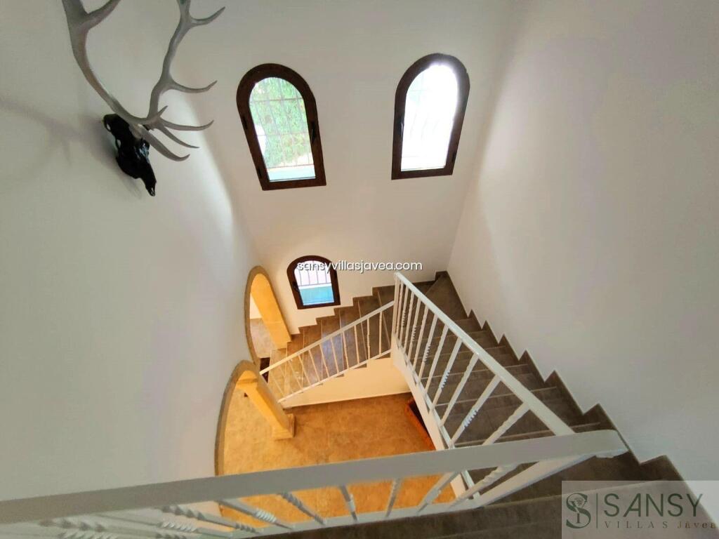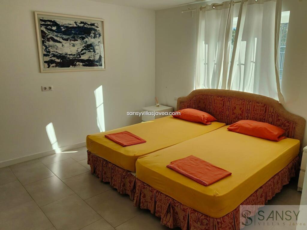 Villa 5 dormitorios, 3 baños, 0 garajes, Buen estado, en Jávea-Xàbia, Alicante Bienvenido a esta joya arquitectónica, un hermoso chalet que encarna la serenidad y la exclusividad. Este refugio privado, rodeado por una imponente valla, se presenta como un oasis de tranquilidad con un jardín exquisitamente fácil de mantener. Al entrar en este paraíso de dos plantas, la planta baja le da la bienvenida con un amplio hall que conecta con tres dormitorios dobles, cada uno diseñado para la máxima comodidad. Uno de ellos se distingue por su lujoso vestidor y un baño en suite, mientras que los demás cuentan con armarios empotrados para satisfacer todas sus necesidades de almacenamiento. Además, encontrará un baño completo y un aseo, garantizando la practicidad y la comodidad en cada rincón. La cocina de verano se convierte en el corazón de la vivienda, ofreciendo una conexión directa con la piscina y el jardín, creando un espacio perfecto para disfrutar de momentos inolvidables al aire libre. Subiendo a la planta superior, se revelan otros dos dormitorios dobles, cada uno con armarios empotrados y balcones que ofrecen vistas cautivadoras. El gran salón, iluminado por ventanales que permiten la entrada abundante de luz natural, se destaca por su chimenea, creando un ambiente cálido y acogedor. El comedor, que se abre a la cocina con una elegante barra americana, forma el escenario perfecto para encuentros familiares y cenas memorables. Además, una enorme naya acristalada y cerrada ofrece vistas panorámicas impresionantes, creando un espacio adicional para la relajación y el deleite visual. Descendiendo por una escalera exterior, se accede al exquisito jardín con una zona de pérgola y una tentadora piscina, creando un rincón paradisíaco para disfrutar de la vida al aire libre. Este chalet es más que una casa es un hogar diseñado para acomodar a una familia grande o a aquellos que buscan un espacio generoso y bien distribuido. Experimente la amplitud, la elegancia y la comodidad en cada rincón de esta propiedad, que seguramente satisfará los más altos estándares de quienes buscan un estilo de vida exclusivo y sereno. FECHAS Y PRECIOS A CONSULTAR.