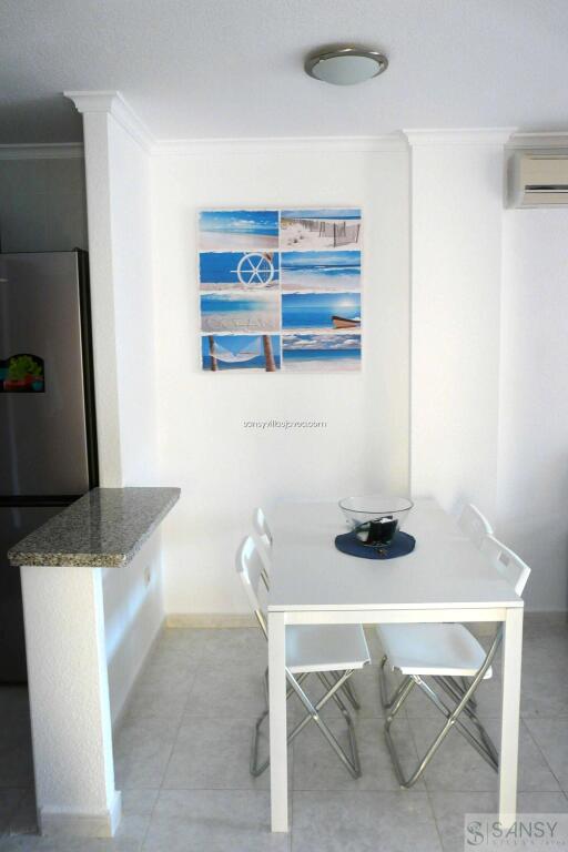 Apartamento 2 dormitorios, 1 baños, 0 garajes, Buen estado, en Benitachell, Alicante Apartamento planta baja , una Urbanizacion familiar y con amplias zonas comunes en Pueblo Montecala, en Urbanización Cumbre del sol, Benitachell, Alicante. Con 2 habitaciones, un cuarto de baño con ducha, comedor con cocina americana y salida directa a terraza con vistas a la montaña y piscina, dispone de 2 aires acondicionados. Los muebles y electrodomestico son seminuevos . Con 3 piscinas de abiertas todo el año.