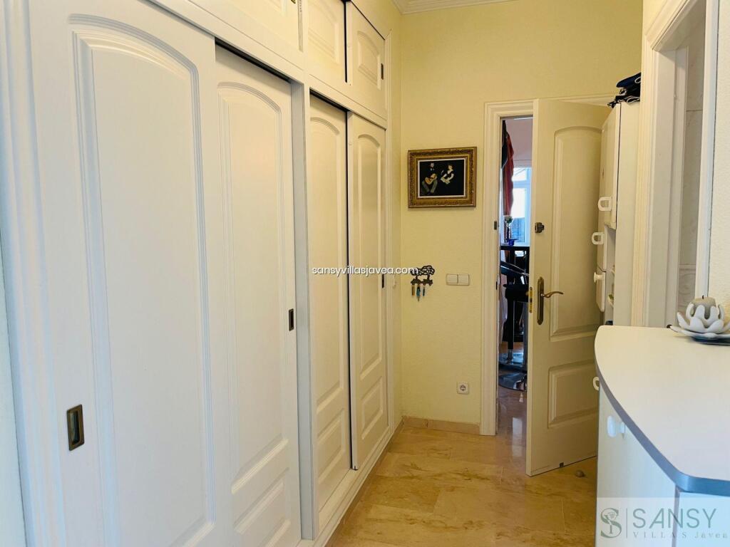 Villa 4 dormitorios, 4 baños, 0 garajes, Buen estado, en Dénia, Alicante Este Chalet se encunetra en una buena zona residencial de Denia con muy buenas vistas al mar y panoramicas. Se destribuye en tres pantas , con amplio salon/ comedor con salida a una terraza acristalada donde se aprecia las vistas . La cocina es abierta y estar equipada, 4 dormitorios con armarios empotrados , 4 baños dos de ellos on suite , 1 aseo. Apartamento de invitados con acceso des de la casa. Piscina climatizada por placas solar, jardin de facil mantenimiento. Sala de juego y 3 trasteros , la casa se encuentra en perfecto estado