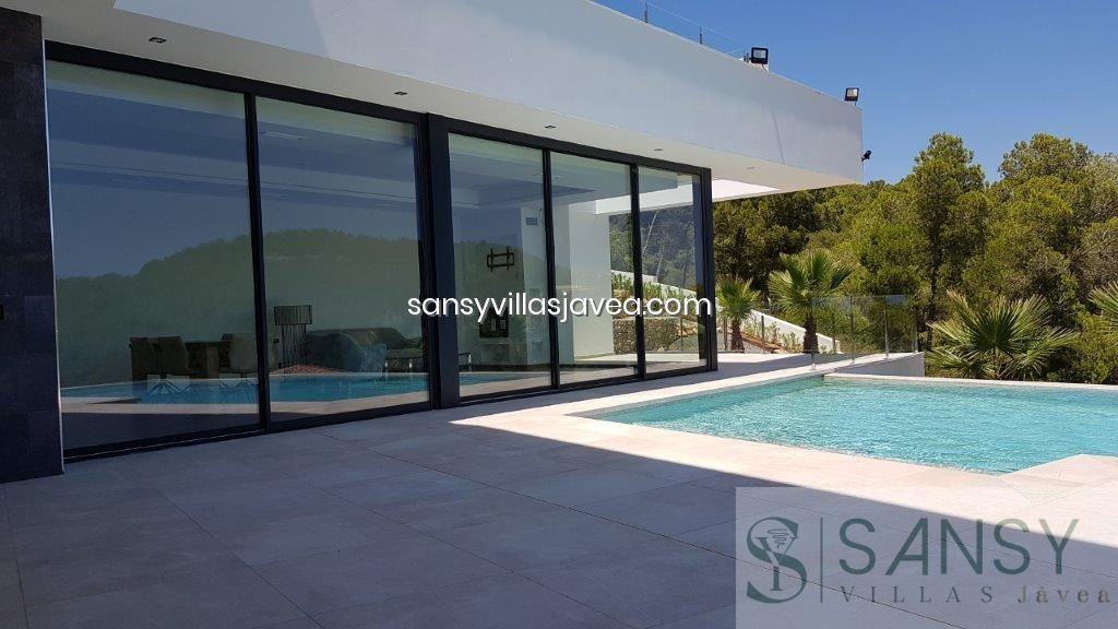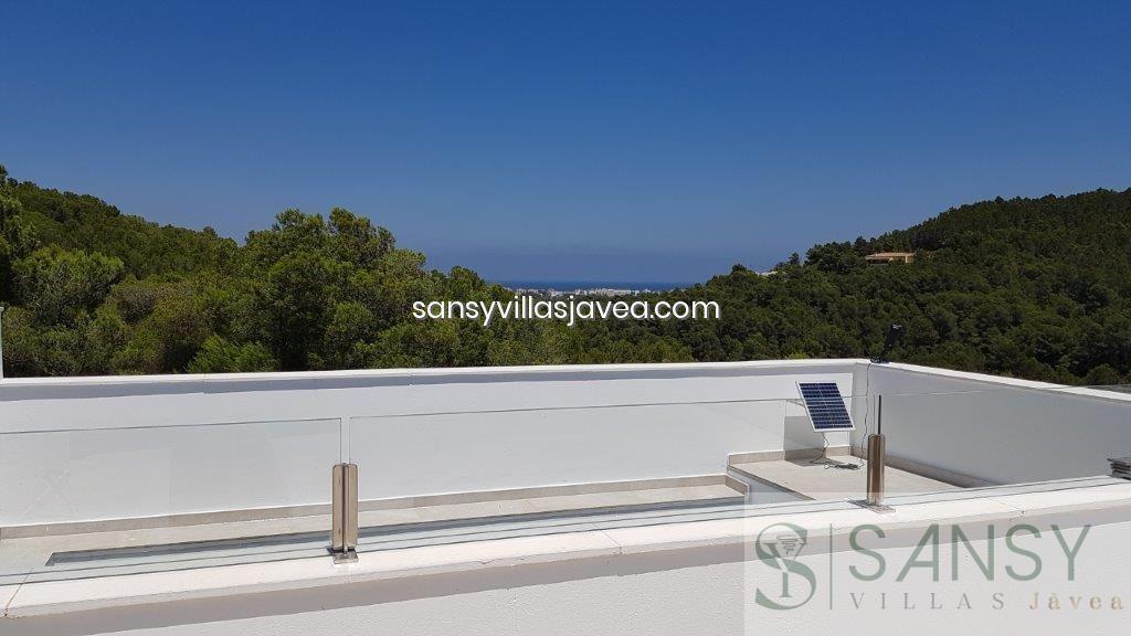 Villa 3 dormitorios, 3 baños, 1 garajes, Buen estado, en Jávea-Xàbia, Alicante Chaletde lujo de nueva construcción de 3 dormitorios con vistas a Jávea y al mar El chaletconsta, en la planta baja gran salón-comedor, cocina con lavadero contiguo y un aseo de invitados. Arriba hay 3 amplios dormitorios y 2 baños (uno ensuite). Todos los dormitorios tienen acceso a la gran azotea. Amplio sótano con garaje con puerta eléctrica. Calefacción mediante bomba de calor y energía solar. Sistema de aire acondicionado central. Parcela cerrada con barbacoa de obra, gran piscina desbordante y jardín aterrazado. Calzada cerrada y acceso adicional desde la carretera a nivel de entrada.
