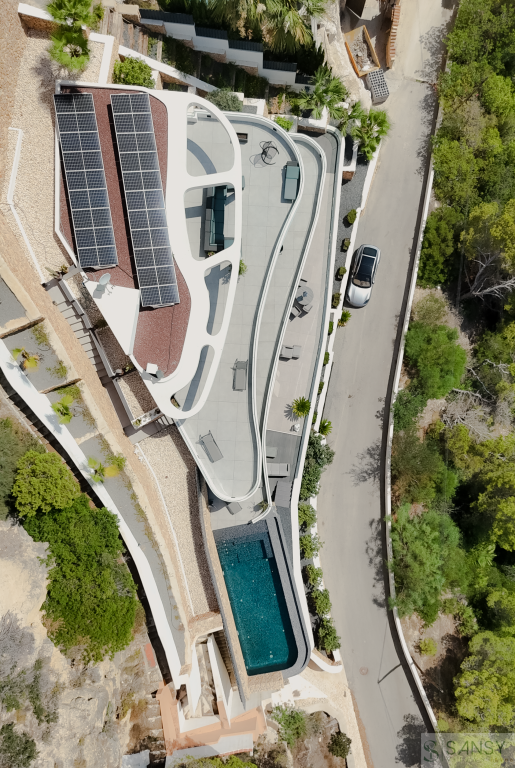 Villa 3 dormitorios, 3 baños, 4 garajes, Nuevo, en Jávea-Xàbia, Alicante Ubicada en una calle sin salida de un acantilado, en una de las zonas más exclusivas de Jávea, esta espectacular villa de diseño contemporáneo ofrece una experiencia residencial única, con vistas ininterrumpidas al mar Mediterráneo y al horizonte. La vivienda, orientada al Sur para aprovechar al máximo la luz natural, se distribuye en cuatro niveles conectados por un ascensor privado y una elegante escalera de vidrio y microcemento. Cuenta con 3 dormitorios en suite, incluyendo una lujosa suite principal con terraza privada con vistas panorámicas al infinito, vestidor y baño con bañera y ducha. La planta principal alberga un amplio salón-comedor de 214 m², junto a una cocina de alta gama con isla central, que se abre a una gran terraza envolvente y a una impresionante piscina infinita con cascada. El nivel inferior dispone de garaje con capacidad para varios vehículos. Todo ello en una parcela tranquila y privada, lista para entrar a vivir y disfrutar del lujo, el diseño y la tranquilidad del estilo de vida mediterráneo.