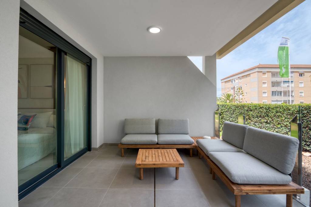 El entorno exterior de este residencial en Torrevieja está diseñado para maximizar el disfrute del clima mediterráneo. Las propiedades cuentan con terrazas privadas, perfectas para relajarse y disfrutar de las vistas al mar. Además, algunas tipologías incluyen solárium y jardines privados, proporcionando un espacio adicional para el ocio al aire libre. La presencia de un garaje asegura comodidad y seguridad para los vehículos, mientras que la opción de cargar coches eléctricos añade un toque de modernidad y sostenibilidad.