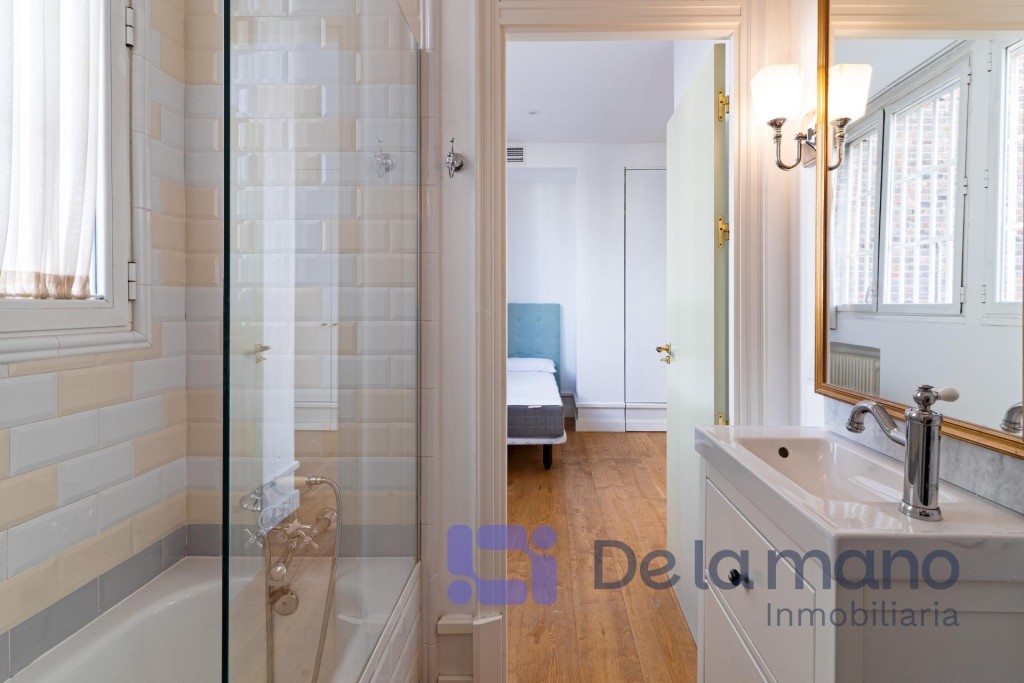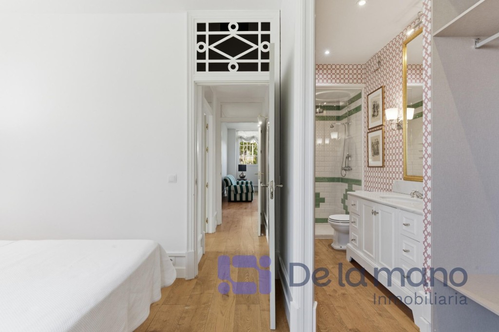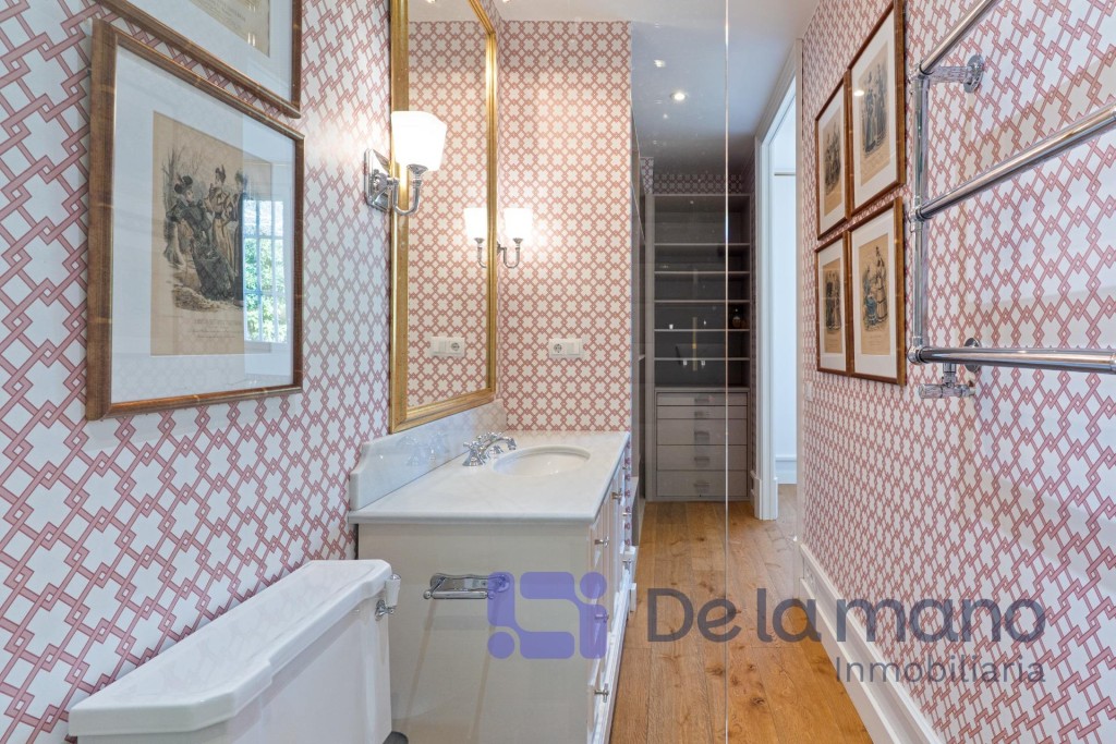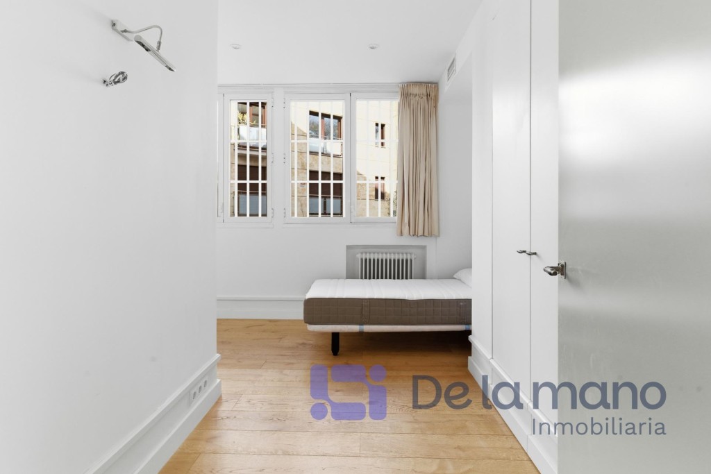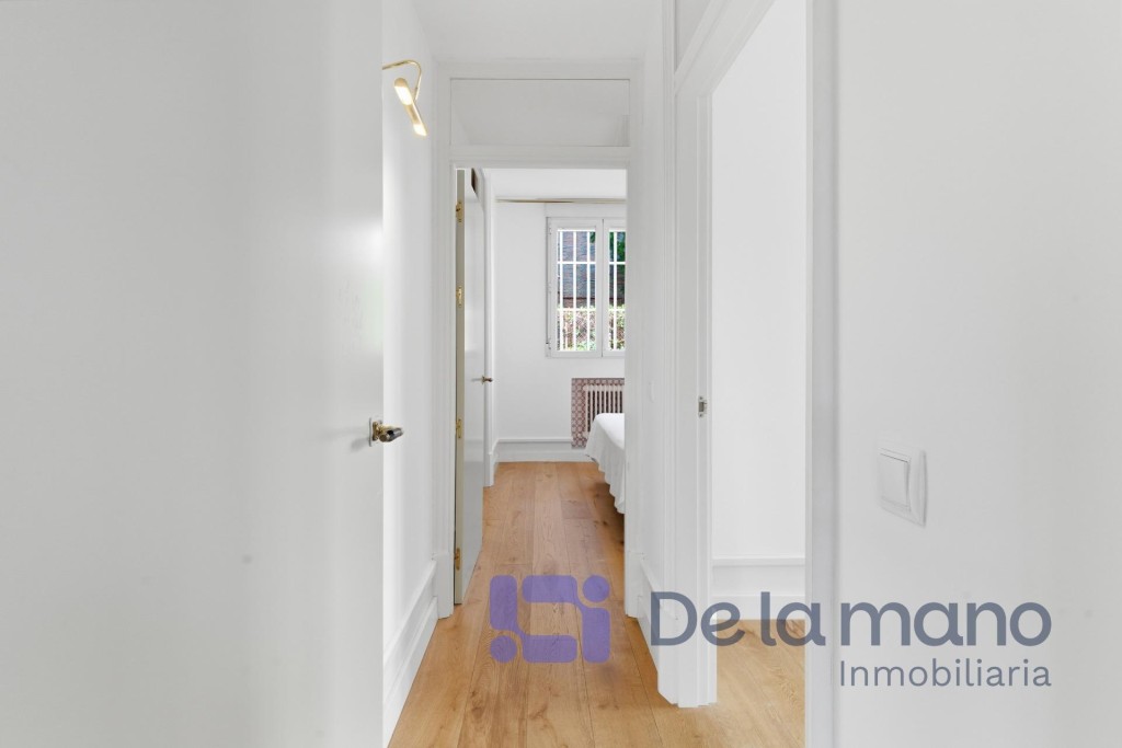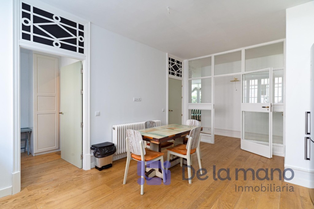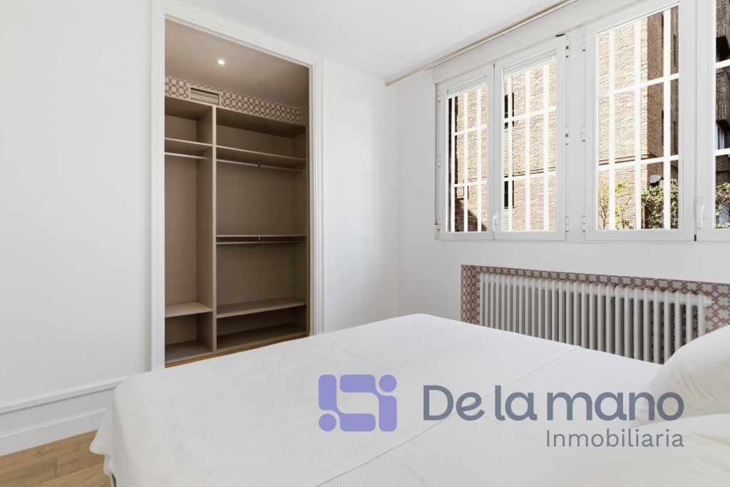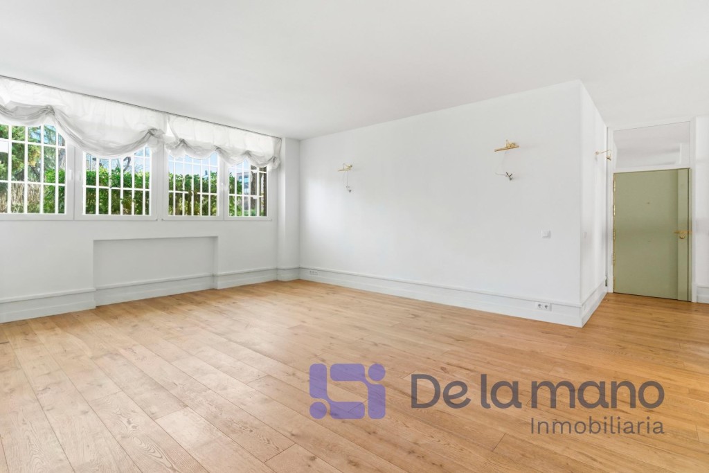 LUMINOSA PLANTA BAJA EN CHAMARTÍN CON VISTAS AL JARDÍNSIN HONORARIOS DE AGENCIA PARA EL INQUILINOInmobiliaria DE LA MANO alquila esta vivienda cuya ubicación se encuentra en el exclusivo distrito de Chamartín, en la Avenida de Pio XII. Esta urbanización privada cuenta con zonas ajardinadas, piscina, gimnasio y otras zonas comunes, pero además dispone de portero físico y posibilidad de alquilar un amplio trastero o una cómoda plaza de aparcamiento en el mismo complejo. En cuanto a la vivienda, tiene una gran luminosidad, una amplitud y una distribución de ensueño con techos altos y un estilo inglés muy cuidado que brinda una personalidad totalmente diferente a lo estándar en Madrid.La distribución de la vivienda se caracteriza por sus amplias estancias, su funcionalidad y modernidad, con tres dormitorios con sendos baños completos en suite, el principal de ellos también con vestidor; una cocina de gran formato totalmente equipada y con vistas al jardín y una zona social diáfana con un coqueto aseo de cortesía. Todas las estancias de la casa cuentan con grandes ventanales que ofrecen vistas a los jardines privados de la finca, favoreciendo el carácter privado y silencioso propios de la vivienda. Cada detalle ha sido cuidadosamente mimado para cubrir las aspiraciones de las familias más exigentes. En cuanto al barrio, podemos decir que es una zona residencial consolidada, segura y tranquila, conectada perfectamente con la M-30 y dotada de instituciones educativas de prestigio como el Colegio Nuestra Señora del Recuerdo, el Sagrado Corazón o la International School of Madrid. Sin duda, un entorno ideal para familias que quieran desarrollar un proyecto vital de gran calidad los próximos años.Si tienes ganas de conocer esta vivienda y crees que podría ser tu hogar ideal no dudes en contactar con nosotros. Buscamos perfiles de demostrada solvencia económica, familias que quieran hacer de este su nuevo hogar por largo tiempo y sin honorarios de agencia para el inquilino. Llámanos o escríbenos y estaremos encantados de enseñarte esta vivienda.