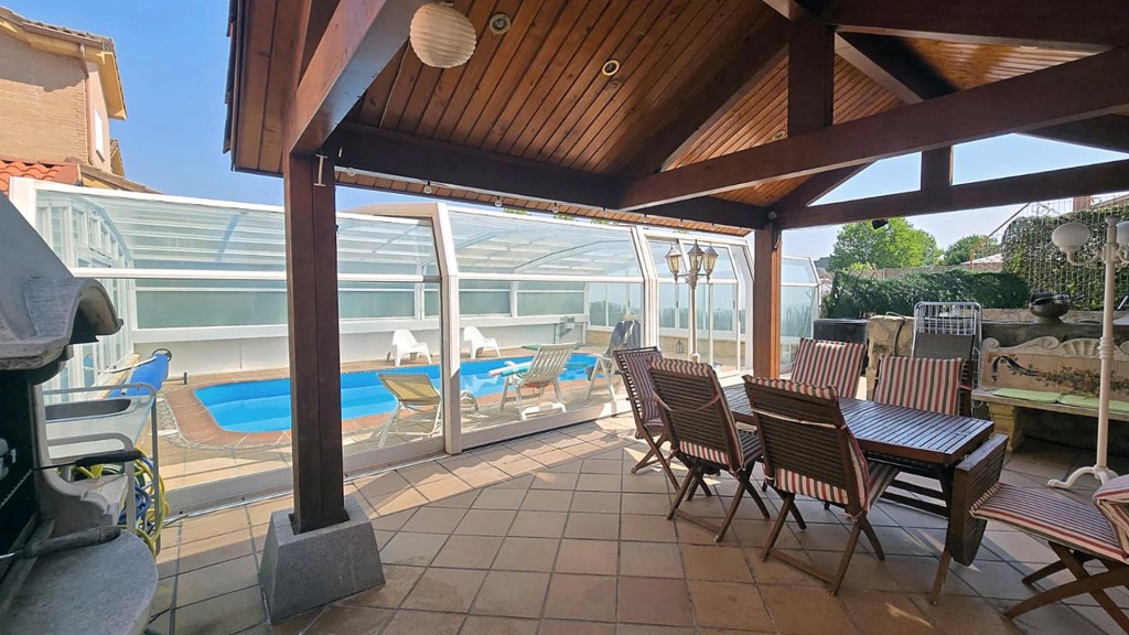 ¡EN VENTA CON ALTA RENTABILIDAD! CHALET PAREADO EN VILLANUEVA DE LA CAÑADA (MADRID)YES HOME | Servicios Inmobiliarios ofrece en Venta, actualmente con Alta Rentabilidad Chalet Pareado en el centro urbano de Villanueva de la Cañada, Madrid.Excelente ubicación, ya que se encuentra en zona residencial en pleno casco urbano de Villanueva de la Cañada. Zona dotada con amplia oferta de servicios cercanos tales como supermercados, farmacias y centros de salud. A tan solo 5 minutos en un agradable paseo de la Calle Cristo donde se puede disfrutar de la variada oferta existente en restauración y ocio.Con muy buena comunicación en transporte público, con diversas líneas autobús en su cercanía. En cuanto a vehículo privado, fácil acceso a las principales vías de comunicación en dirección Madrid centro y sus alrededores.Este amplio chalet se encuentra edificado sobre una parcela de 352 m2, posee una superficie construida de 453 m2, distribuidos en cuatro plantas. Cuenta con Ocho Habitaciones, Cuatro Cuartos de baño y adicionalmente un Piso independiente con un dormitorio y un baño completo.Planta baja dispone de:· Hall de entrada.· Amplio Salón-Comedor con Chimenea y amplios Ventanales que invitan el disfrute de la Piscina Acristalada, Terraza con pérgola y al Jardín con Barbacoa. · Cocina independiente y equipada con todos los electrodomésticos (vitrocerámica, horno, microondas, frigorífico y más).· Dormitorio con armario empotrado y ventana hacia el jardín.· Cuarto de Baño con bañera.Primera planta:· Tres Dormitorios con armarios empotrados y ventanas.· Cuarto de Baño con bañera.· Dormitorio Principal con Baño en Suite con bañera.Segunda Planta - Buhardilla:· Tres amplios Dormitorios con ventanas tipo velux.· Cuarto de Baño con plato de duchaPlanta Semi-Sótano:Piso con entrada Independiente, con una superficie de 65 m2 y con la siguiente distribución del espacio:· Salón-Comedor· La cocina tipo americana es un punto destacado de la propiedad, ya que se encuentra completamente amueblada y equipada con todos los electrodomésticos - frigorífico, lavadora, horno, vitrocerámica, microondas, campana extractora -.· La habitación es luminosa, se encuentra amueblada con una cama doble con canapé. Así mismo, cuenta con un Vestidor de grandes dimensiones.· Cuarto de baño completo, con plato de ducha.· Garaje para un coche. La propiedad dispone de una inmejorable entrada de luz en todas las estancias, gracias a la variedad y disposición de sus de ventanas con vistas al exterior.La venta de éste Chalet en Rentabilidad se ofrece amueblado en su totalidad, las habitaciones cuentan con camas dobles, escritorio, sillas, espacio para almacenamiento. Es un inmueble pensado actualmente para estudiantes para que su estancia sea muy cómoda y confortable ya que se encuentra muy cerca de la UAX.Esta amplia vivienda lista para ingresar a vivir, ofrece diversas opciones de adaptación a las necesidades de los nuevos propietarios. Especialmente como inversión segura y atractiva a través de su arrendamiento, en una zona de alta demanda, O como una excelente oportunidad para aquellos que buscan un lugar tranquilo y cómodo para vivir, ideal para familias numerosas. ¡No esperes más y contáctanos para obtener más información!Estamos a su disposición para cualquier consulta o visita que desee realizar.Honorarios Compartidos entre el Comprador y el Vendedor... los más Bajos del Mercado.