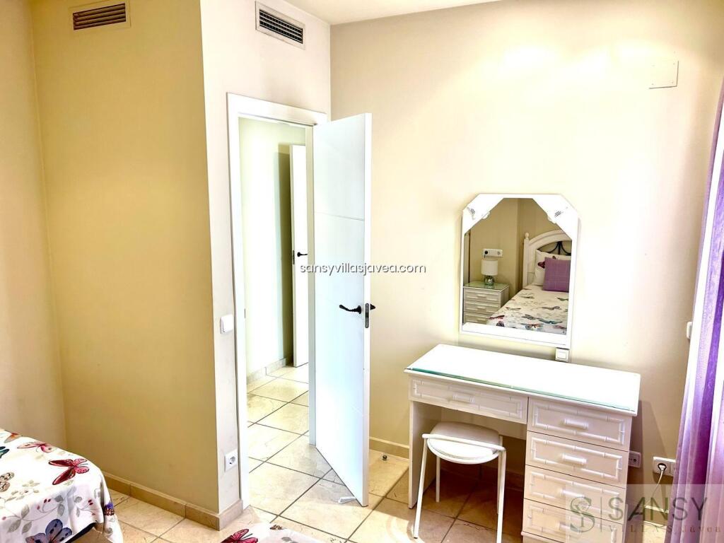 Atico 2 dormitorios, 2 baños, 1 garajes, Buen estado, en Moraira, Alicante Amplio ático de 2 dormitorios y 2 baños con solárium y piscina privada en venta en Moraira. Este amplio apartamento está situado a pocos pasos del centro de Moraira y el puerto deportivo. La propiedad está orientada al sur y consta de puerta de entrada que conduce a un gran salón comedor de planta abierta con vistas orientadas al sur hacia Calpe Ifach y las montañas de Bernia, grandes puertas correderas que dan a un balcón de buen tamaño capaz de acomodar una mesa de comedor de tamaño familiar y sillas, el salón también se beneficia de una chimenea de trabajo y chimenea. Desde el comedor una puerta conduce a la cocina independiente, con una gama completa de unidades equipadas y electrodomésticos, y un lavadero más que alberga la lavadora y secadora. Un pasillo interior desde el salón conduce a un cuarto de baño, 2 dormitorios dobles, el principal con baño en suite y vistas a la piscina y jardines. Desde el balcón de la sala de estar, las escaleras conducen al amplio solárium, equipado con barbacoa, amplia zona de estar y piscina privada, hay un amplio espacio de terraza para tumbonas y el solarium tiene excelentes vistas orientadas al sur hacia Calpe y el mar. El solárium también se beneficia de un trastero. La propiedad incluye un garaje subterráneo doble con ascensor a todas las plantas desde la zona de aparcamiento. Esta es una gran oportunidad para comprar un amplio ático con piscina privada, ideal para la vida permanente o los ingresos de alquiler de vacaciones y con todas las comodidades de Moraira prácticamente en la puerta.