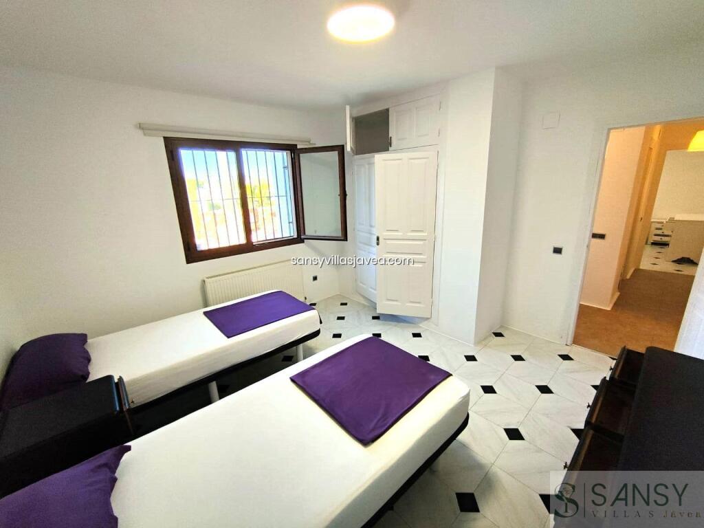 Villa 5 dormitorios, 3 baños, 0 garajes, Buen estado, en Jávea-Xàbia, Alicante Bienvenido a esta joya arquitectónica, un hermoso chalet que encarna la serenidad y la exclusividad. Este refugio privado, rodeado por una imponente valla, se presenta como un oasis de tranquilidad con un jardín exquisitamente fácil de mantener. Al entrar en este paraíso de dos plantas, la planta baja le da la bienvenida con un amplio hall que conecta con tres dormitorios dobles, cada uno diseñado para la máxima comodidad. Uno de ellos se distingue por su lujoso vestidor y un baño en suite, mientras que los demás cuentan con armarios empotrados para satisfacer todas sus necesidades de almacenamiento. Además, encontrará un baño completo y un aseo, garantizando la practicidad y la comodidad en cada rincón. La cocina de verano se convierte en el corazón de la vivienda, ofreciendo una conexión directa con la piscina y el jardín, creando un espacio perfecto para disfrutar de momentos inolvidables al aire libre. Subiendo a la planta superior, se revelan otros dos dormitorios dobles, cada uno con armarios empotrados y balcones que ofrecen vistas cautivadoras. El gran salón, iluminado por ventanales que permiten la entrada abundante de luz natural, se destaca por su chimenea, creando un ambiente cálido y acogedor. El comedor, que se abre a la cocina con una elegante barra americana, forma el escenario perfecto para encuentros familiares y cenas memorables. Además, una enorme naya acristalada y cerrada ofrece vistas panorámicas impresionantes, creando un espacio adicional para la relajación y el deleite visual. Descendiendo por una escalera exterior, se accede al exquisito jardín con una zona de pérgola y una tentadora piscina, creando un rincón paradisíaco para disfrutar de la vida al aire libre. Este chalet es más que una casa es un hogar diseñado para acomodar a una familia grande o a aquellos que buscan un espacio generoso y bien distribuido. Experimente la amplitud, la elegancia y la comodidad en cada rincón de esta propiedad, que seguramente satisfará los más altos estándares de quienes buscan un estilo de vida exclusivo y sereno. FECHAS Y PRECIOS A CONSULTAR.