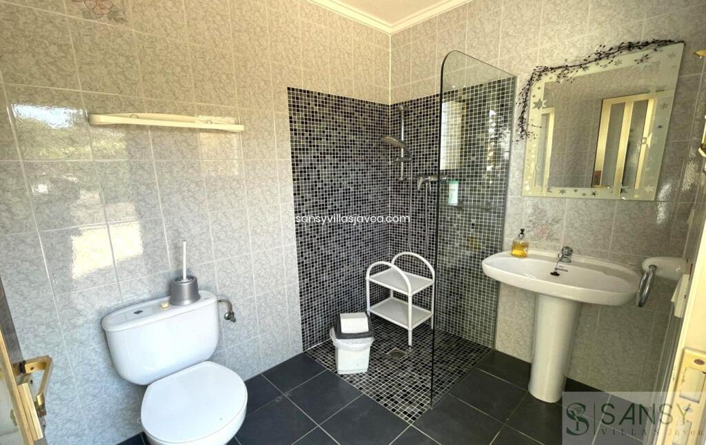 Villa 5 dormitorios, 3 baños, 1 garajes, Buen estado, en Jávea-Xàbia, Alicante Preciosa villa privada situada en La Granadella con impresionantes vistas abiertas a la montaña y al mar. Esta propiedad fue reformada en 2010 en un estilo tradicional con vigas de madera en el techo y arcos de tosca. La cocina se amplió y se abrió al salón proporcionando más amplitud y luz a la misma y a toda la casa. La cocina, totalmente equipada, cuenta también con una entrada trasera, mucho espacio de almacenamiento y un lavadero separado. El salón es amplio y luminoso y cuenta con una preciosa chimenea decorada en piedra. A través de un amplio arco de tosca se accede al gran comedor que cuenta con impresionantes vistas al mar desde las ventanas. La villa se distribuye en 2 plantas, siendo en la planta alta el salón principal y teniendo en la planta baja un apartamento independiente. En la planta superior encontramos 3 dormitorios dobles y 2 baños, siendo uno de los baños el de la habitación principal. También encontramos en esta planta una naya acristalada orientada al norte y mirando al mar que es ideal para el verano cuando el sol es demasiado caliente. También desde esta planta accedemos a un solarium muy privado con impresionantes vistas abiertas de 360º a la montaña y al mar. En la planta inferior encontramos un apartamento independiente que cuenta con una cocina totalmente equipada, un gran salón/comedor con vistas al mar, 2 dormitorios dobles, un gran baño con bañera y un lavadero/trastero separado. Este apartamento independiente es ideal para alquilarlo en vacaciones o para dar alojamiento a familiares y amigos. El exterior de la propiedad cuenta con un hermoso jardín mediterráneo de bajo mantenimiento con árboles frutales como naranjos, limoneros y nísperos que tiene un sistema de riego que utiliza el agua de un depósito de 20.000 litros que recoge el agua de la calle. La gran terraza exterior es donde encontramos la piscina de 5x12, orientada al sur/oeste y con sol casi todo el día. Desde la piscina podemos disfrutar de unas impresionantes vistas al mar. La villa también cuenta con una hermosa zona de barbacoa y un baño exterior, más fácil de acceder cuando se utiliza la piscina. La propiedad cuenta con un gran trastero subterráneo donde se encuentra la maquinaria de la piscina y también una cochera cerrada para 1 coche y aparcamiento para hasta 2 coches más. La propiedad está equipada con calefacción central con radiadores de gas. Esta hermosa propiedad está lista para ser entregada y debe ser vista para ser apreciada.
