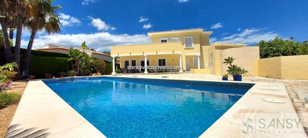 Villa 6 dormitorios, 4 baños, 1 garajes, Buen estado, en Moraira, Alicante Bonita moderna orientación sur con un apartamento independiente de dos dormitorios ubicado en el atractivo barrio de Sol Park, Moraira. Se accede a la villa a través de la puerta de entrada al hall de entrada. Arriba al primer piso, lo lleva al dormitorio principal con aire acondicionado empotrado, vestidor y baño en suite. También hay acceso a un gran balcón/terraza privada con una pequeña vista al mar. En la planta baja encontrará la cocina/comedor de planta abierta con acceso de doble puerta a la terraza cubierta, con comedor exterior y sala de estar. Justo al lado del comedor está el salón con sofá, sillas, televisión y aire acondicionado. También en este nivel hay un gran dormitorio (que tiene la posibilidad de convertirse en 2 dormitorios), actualmente acondicionado como dormitorio y 2º salón dividido por armarios altos. Hay un baño situado frente al dormitorio. En la planta baja se encuentran el 2 dormitorios ambos dobles y armarios empotrados , con aire acondicionado y compartiendo el baño grande. El apartamento se encuentra en planta semisótano con acceso propio desde la zona de aparcamiento. El apartamento tiene un salón/cocina, lavadero, baño y 2 habitaciones dobles. El salón y 1 dormitorio cuentan con aire acondicionado. En el exterior hay aparcamiento para 3 o 4 coches con puerta automática y puerta peatonal separada al lado. Hay una gran piscina/solárium con orientación sur abierta, piscina de 10 x 4 m, aseo y ducha solar y barbacoa de obra. El resto de los terrenos están hechos a un estilo de jardín mediterráneo con árboles frutales y palmeras.