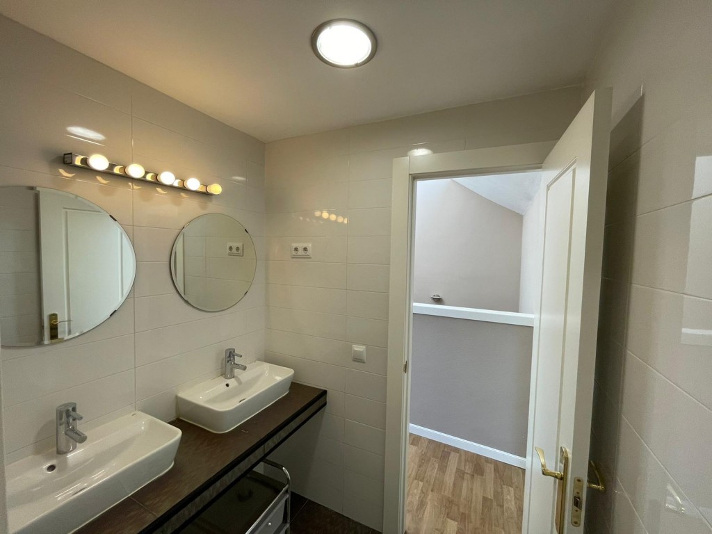 La segunda planta ofrece una buhardilla reformada con aire acondicionado, con dos dormitorios más, cada uno con su propio vestidor, y un baño en suite compartido con acceso desde ambas habitaciones.