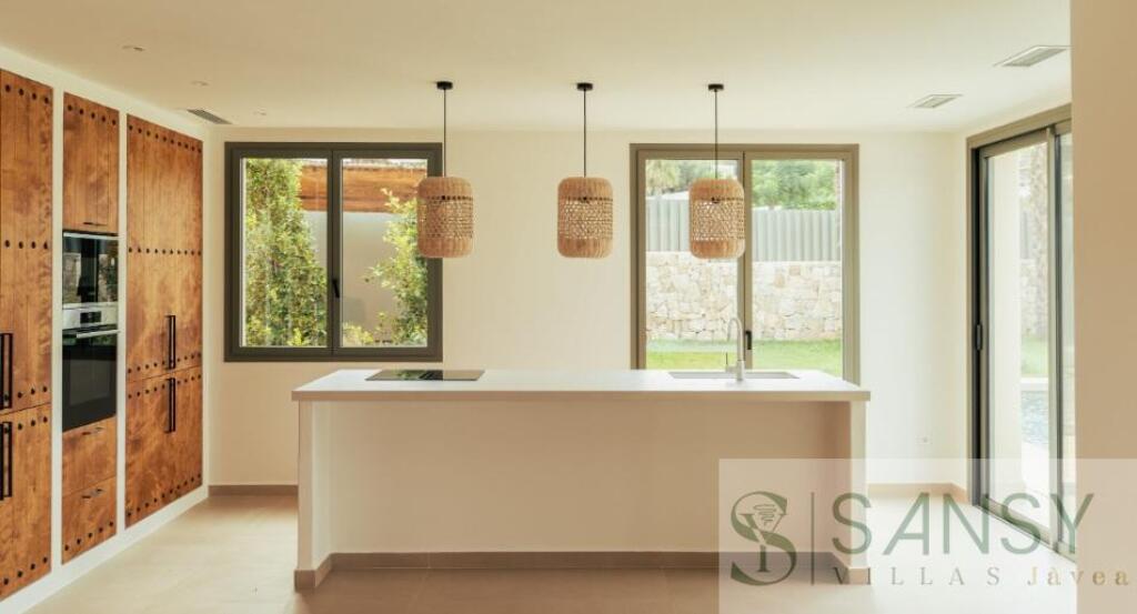 Villa 3 dormitorios, 4 baños, 0 garajes, Buen estado, en Jávea-Xàbia, Alicante Un Refugio Costero de Tranquilidad Descubra Villa Loma, una impresionante villa de obra nueva perfectamente situada con una deseable orientación suroeste en la codiciada costa de Jávea. Esta propiedad de lujo está disponible por 1.375.000 y se asienta sobre una generosa parcela de 1.000 m². La arquitectura es una mezcla maestra de elegante estilo Mediterráneo y chic estilo Ibiza, definida por sus distintivas esquinas redondeadas, decorativas vigas de madera vista y elegantes techos abovedados.Puntos Clave de Diseño y AcabadosAcabados Auténticos Los detalles tallados a mano en piedra natural y las exquisitas vigas de madera reflejan la elegancia genuina de la región.Luz Óptima Un tradicional tejado de teja de arcilla y grandes ventanales equipados con contraventanas aseguran abundante luz natural durante todo el día.Espaciosa y Funcional La villa, con una superficie construida de 200 m², está convenientemente diseñada toda en una sola planta, facilitando un movimiento fluido y accesible.Interiores Confort ModernoLa distribución pensada al detalle incluye un amplio salón-comedor, una cocina moderna totalmente equipada y un lavadero independiente. La zona de noche cuenta con tres cómodos dormitorios con armarios integrados, todos ellos con el lujo de tres baños completos en suite, más un aseo de cortesía adicional, sumando un total de cuatro baños. Es la vivienda de una sola planta perfecta para una vida de lujo sin esfuerzo.Oasis Exterior Estilo de Vida en Jávea en una Parcela de 1.000m²La extensa parcela de 1.000 m² está diseñada para la máxima relajación bajo el suave clima de Jávea. Disfrute del jardín Mediterráneo bien cuidado, relájese junto a la espectacular piscina privada de agua turquesa, o celebre comidas familiares en las amplias terrazas bañadas por el sol, ideales para cenas al aire libre.Características Premium y TecnologíaEste hogar moderno está equipado con todo lo necesario para la comodidad y seguridadParking Pérgola cubierta para dos coches (espacio de Garaje).Climatización Sistema completo de aire acondicionado (AC).Conectividad Conexión Wi-Fi de alta velocidad.Domótica Sistema de domótica integrado para control de iluminación y videoportero.Villa Loma ofrece la cúspide de las propiedades en Jávea nueva, elegante, funcional y construida con auténtico lujo, todo por 1.375.000 . Asegure hoy mismo la villa Mediterránea de sus sueños.