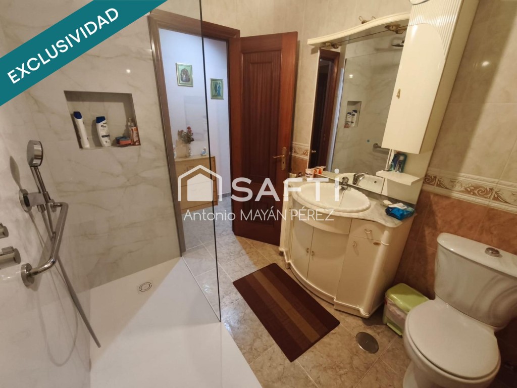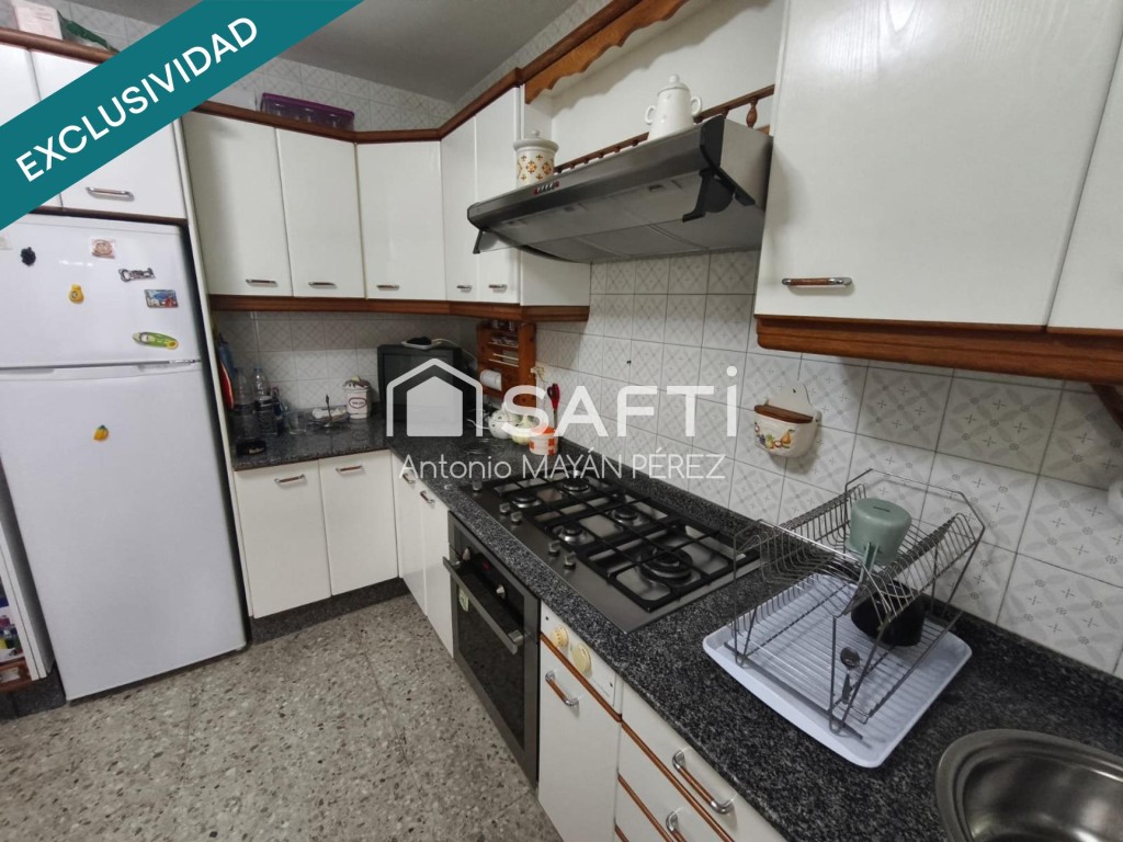 La vivienda cuenta con 97 m² construidos (80 m² útiles), distribuidos en 3 habitaciones, salón-comedor, amplia cocina con despensa y zona de lavadero, y 2 baños. Se trata de un primer piso sin ascensor, muy luminoso y acogedor. Incluye plaza de garaje y un amplio trastero de 14 m², aportando un extra de comodidad y espacio de almacenamiento.