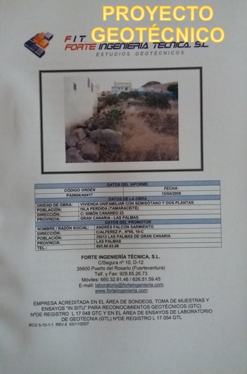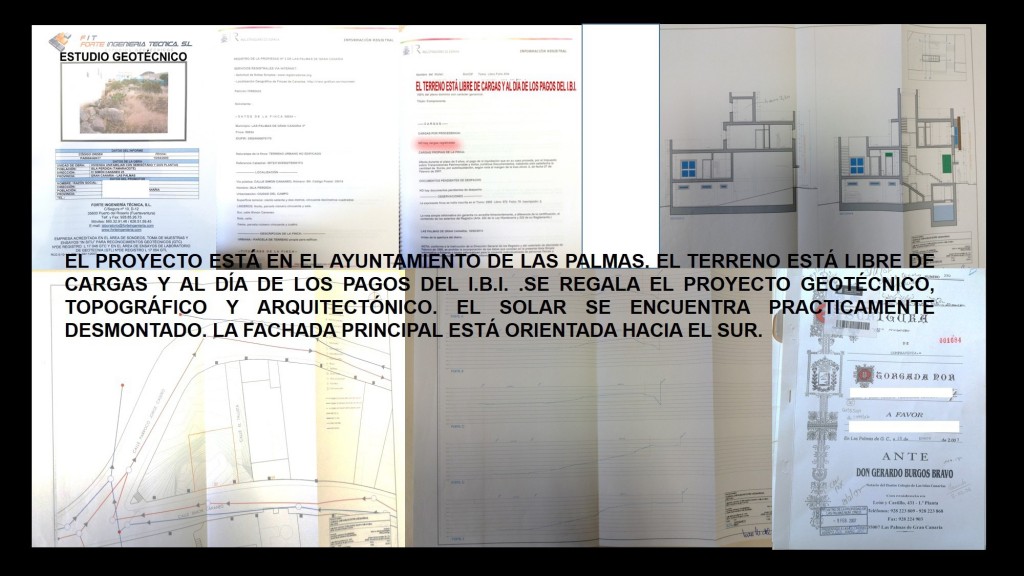 - Proyecto de Estudio Geotécnico, Topográfico y Arquitectónico, ya realizado y presentado en el Ayuntamiento de Las Palmas (se regala).