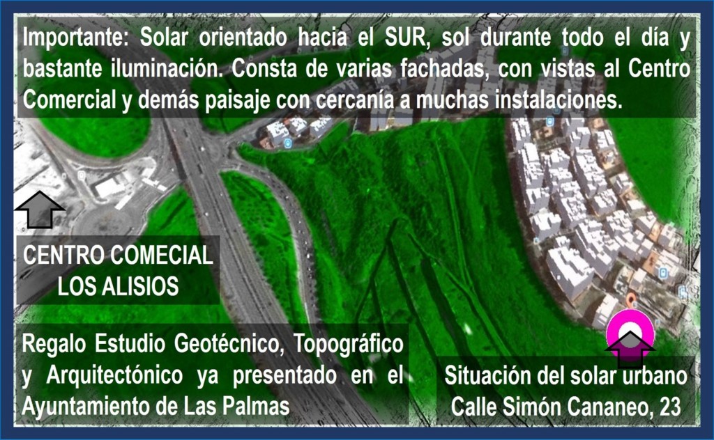 ¡Oportunidad única, el solar urbano más barato de la zona! SOLAR URBANO en LAS PALMAS capital de 229 m² en Referencia Catastral (173m² edificables por planta). Ubicado en zona residencial en plena expansión, a pocos pasos del Centro Comercial Los Alisios-Tamaraceite.