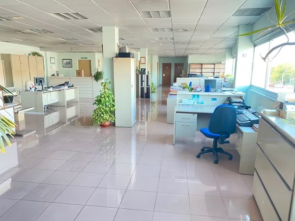 Área de oficinas distribuidas en tres plantas, con una superficie conjunta superior a 900 m², completamente acondicionadas, con buena iluminación natural y adecuadas para uso corporativo.