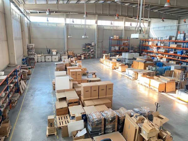 Zona de almacén o producción en planta baja, con una superficie aproximada de 1.323 m² y altura libre de 9 metros, apta para logística, almacenaje o actividad industrial.