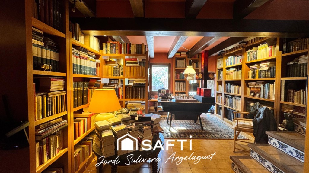 Además, cuenta con una elegante biblioteca, perfecta como zona de lectura, despacho o espacio de relax. Los detalles arquitectónicos, como las bóvedas catalanas y los acabados de calidad, aportan un estilo atemporal y distinguido a toda la vivienda.