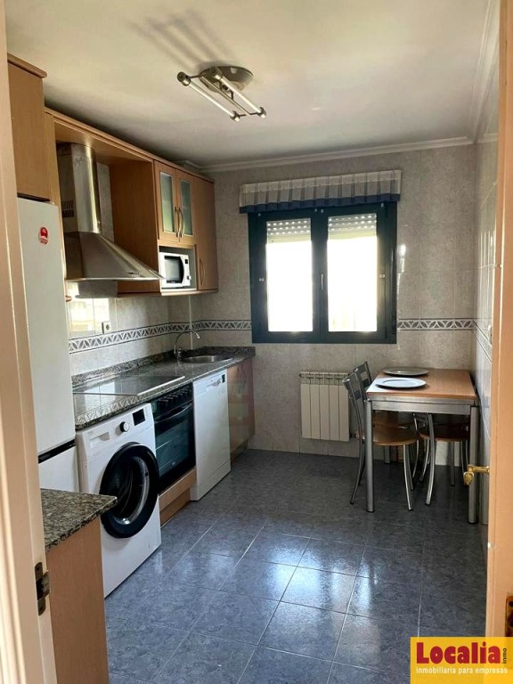 Cocina totalmente equipada, con electrodomésticos modernos, lavadora, lavavajillas y horno.