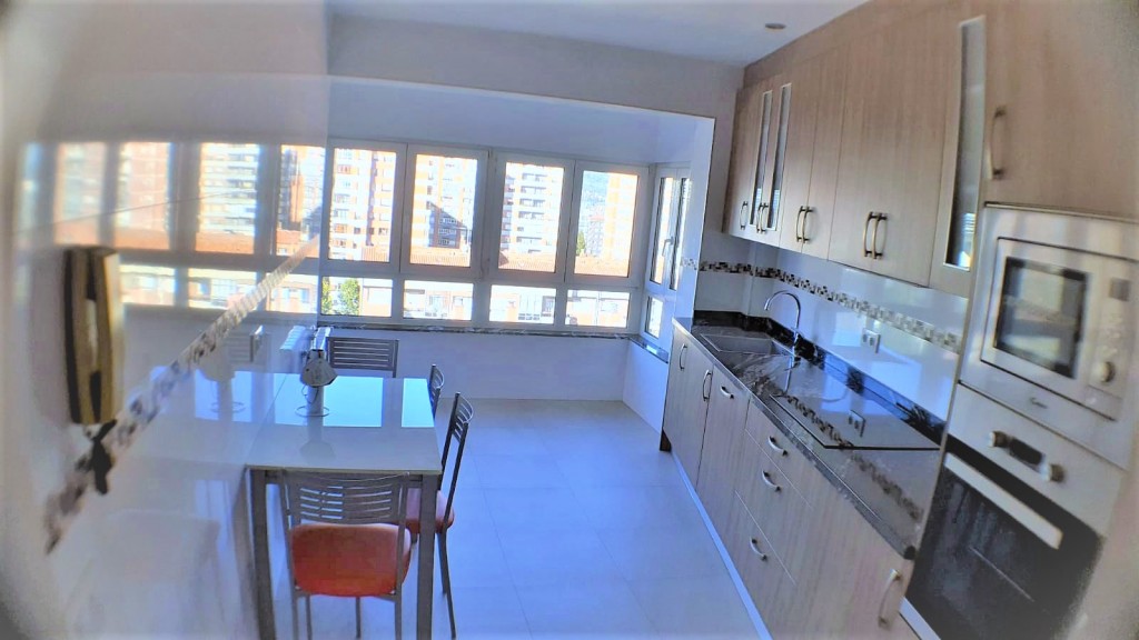 Alquiler de piso amueblado distribuido en tres dormitorios, salón, cocina-terraza, baño y hall-pasillo que distribuye la casa. Totalmente exterior y con bonitas vistas gracias a la espaciosidad de sus ventanales y a la altura del inmueble.